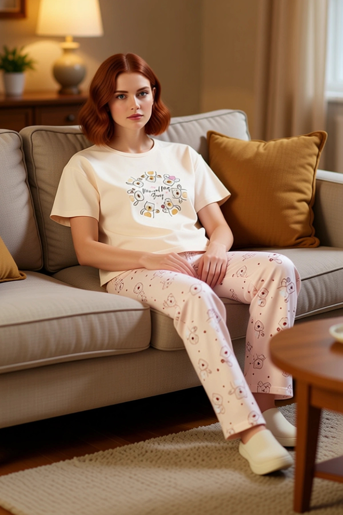 Kadın Sevimli Ayıcık Desenli Pijama Takımı Fonksiyonel Dayanıklı Kaliteli Konforlu Estetik