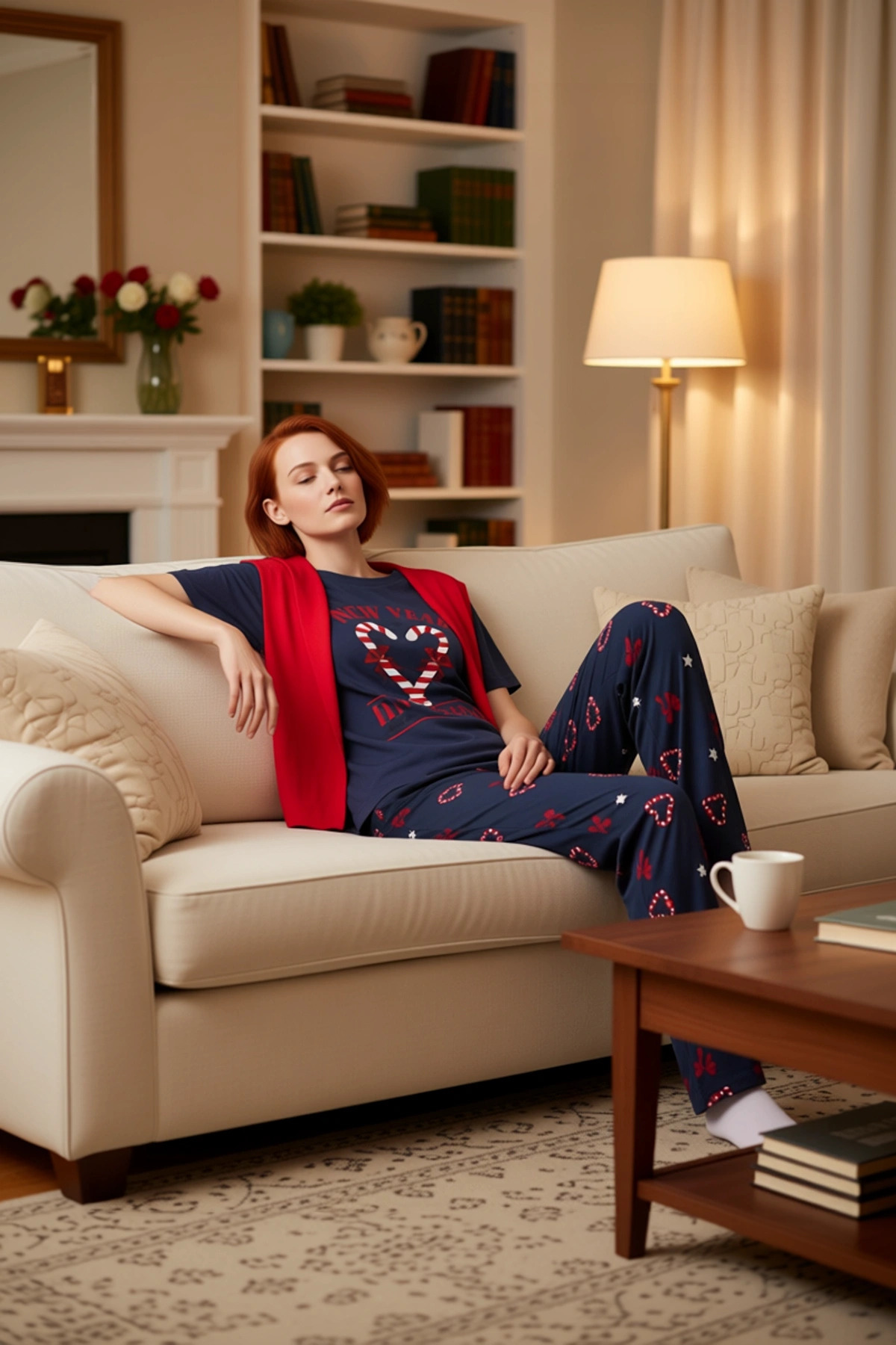 Kadın Kalp Desenli Pijama Takımı Fonksiyonel Dayanıklı Kaliteli Konforlu Estetik Premium Şık