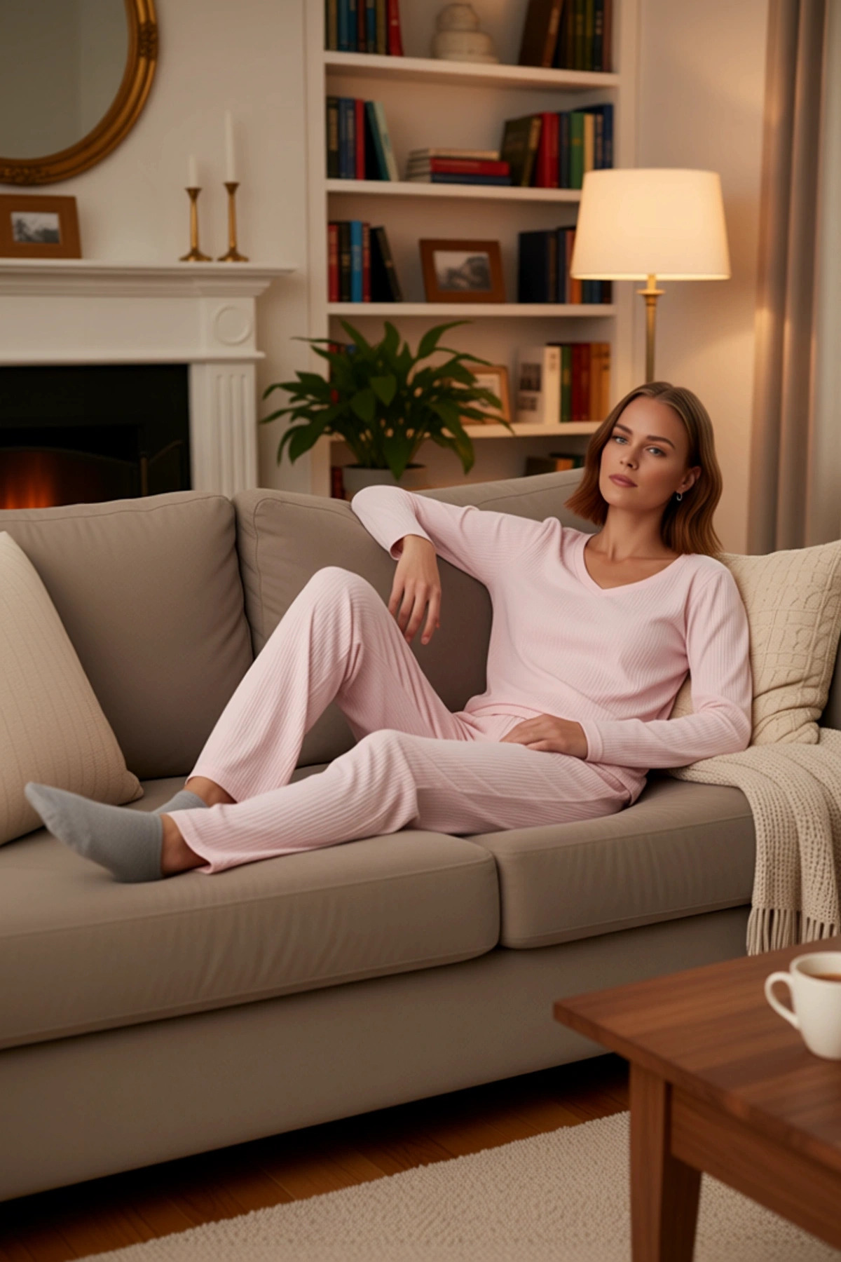 Kadın V Yaka Örme Pijama Takımı Fonksiyonel Dayanıklı Kaliteli Konforlu Estetik Premium Şık
