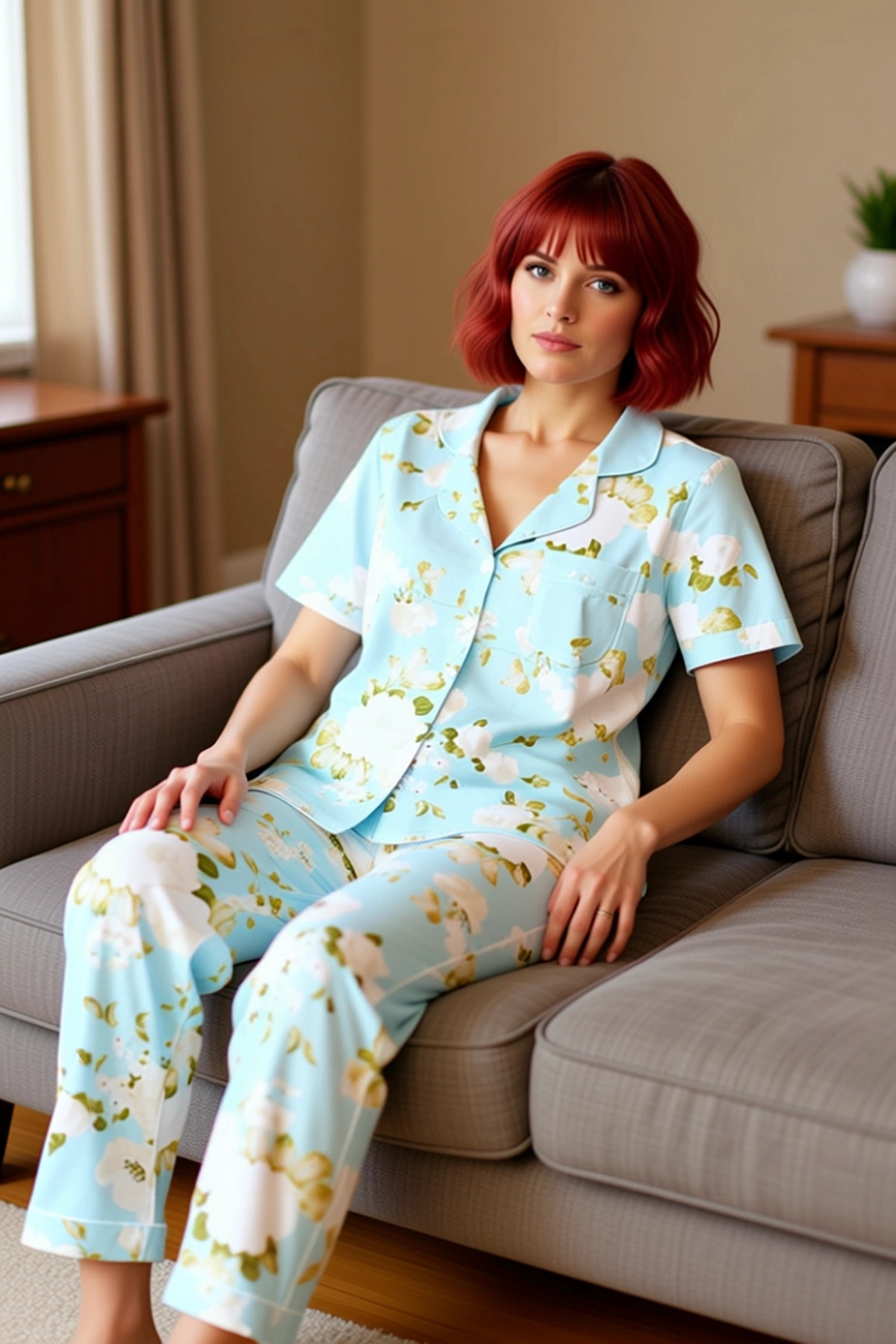 Kadın Çiçek Desenli Gömlek Yaka Ev Giyim Takımı Fonksiyonel Dayanıklı Kaliteli Konforlu Şık