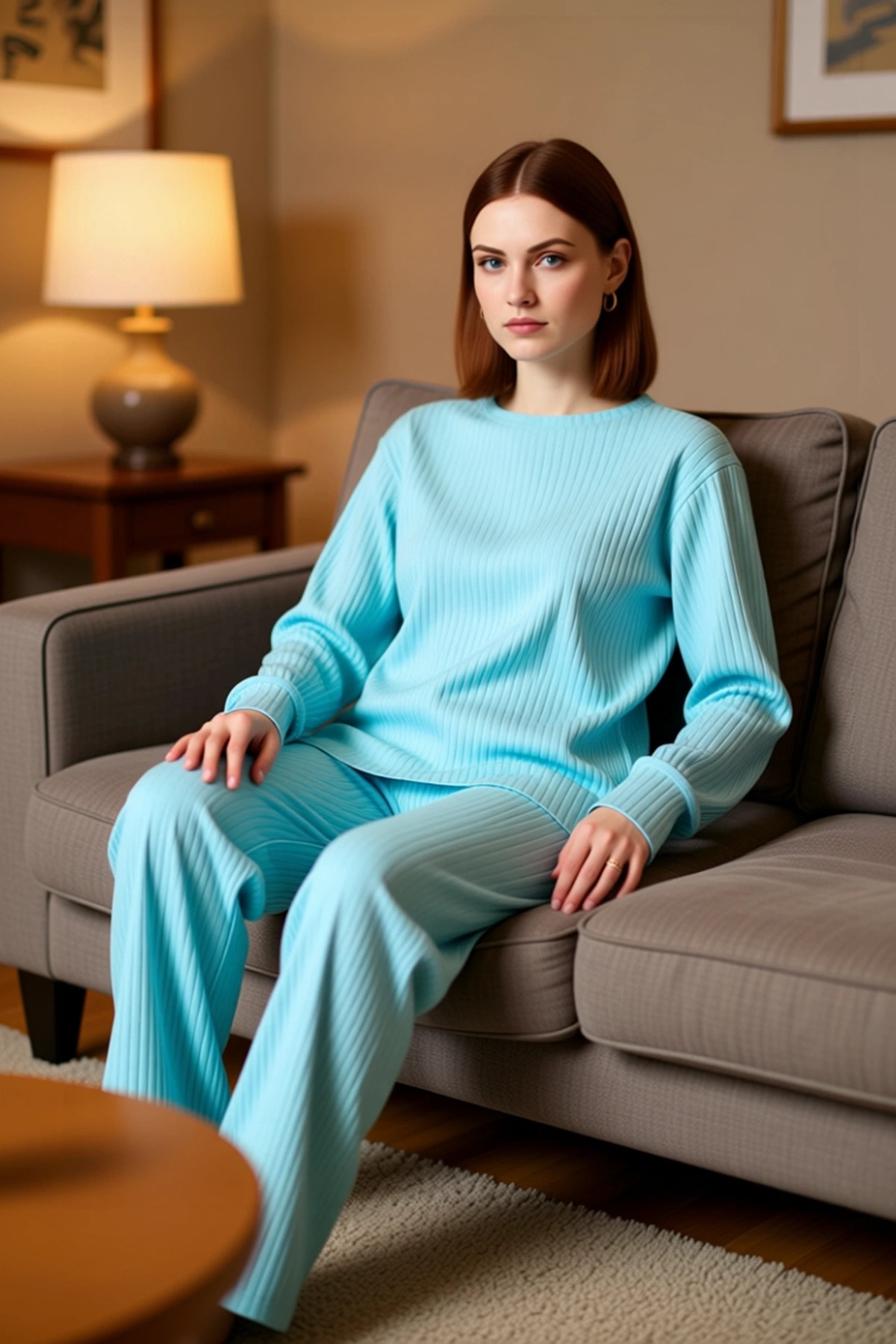 Kadın Lounge Fitilli Örme Pijama Takımı Bisiklet Yaka Fonksiyonel Dayanıklı Kaliteli Rahat