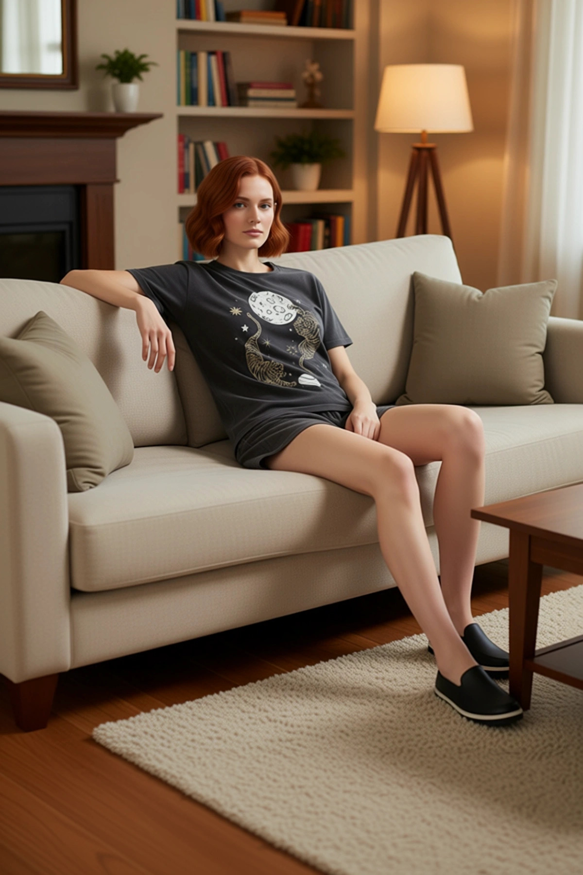 Kadın Antrasit Galaksi Kaplan Baskılı Bisiklet Yaka Şortlu Pijama Takımı Fonksiyonel Rahat