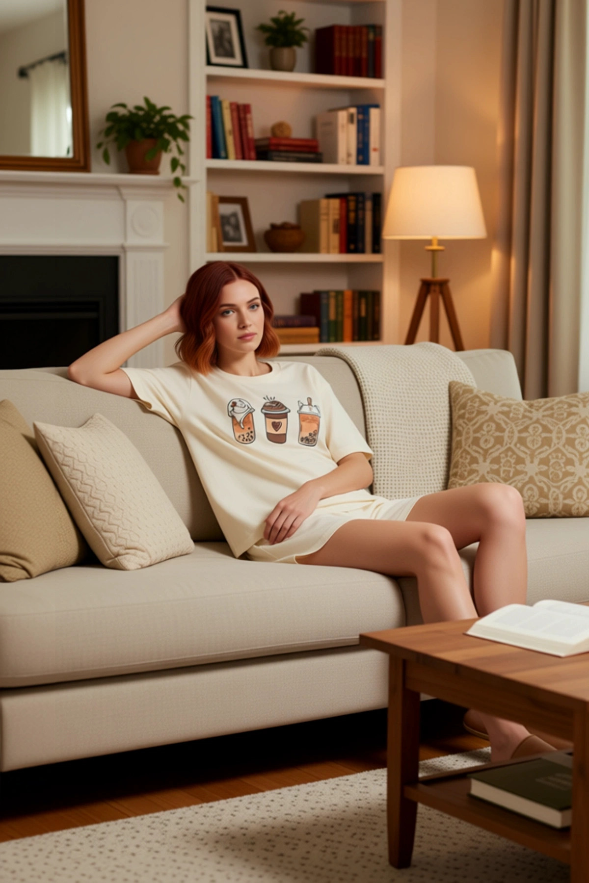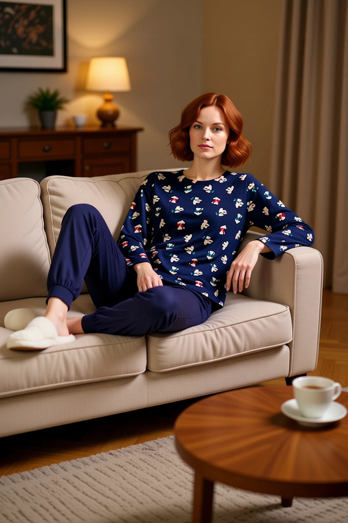 Kadın Bisiklet Yaka Kahve Baskılı Pijama Takımı Fonksiyonel Dayanıklı Kaliteli Konforlu Şık