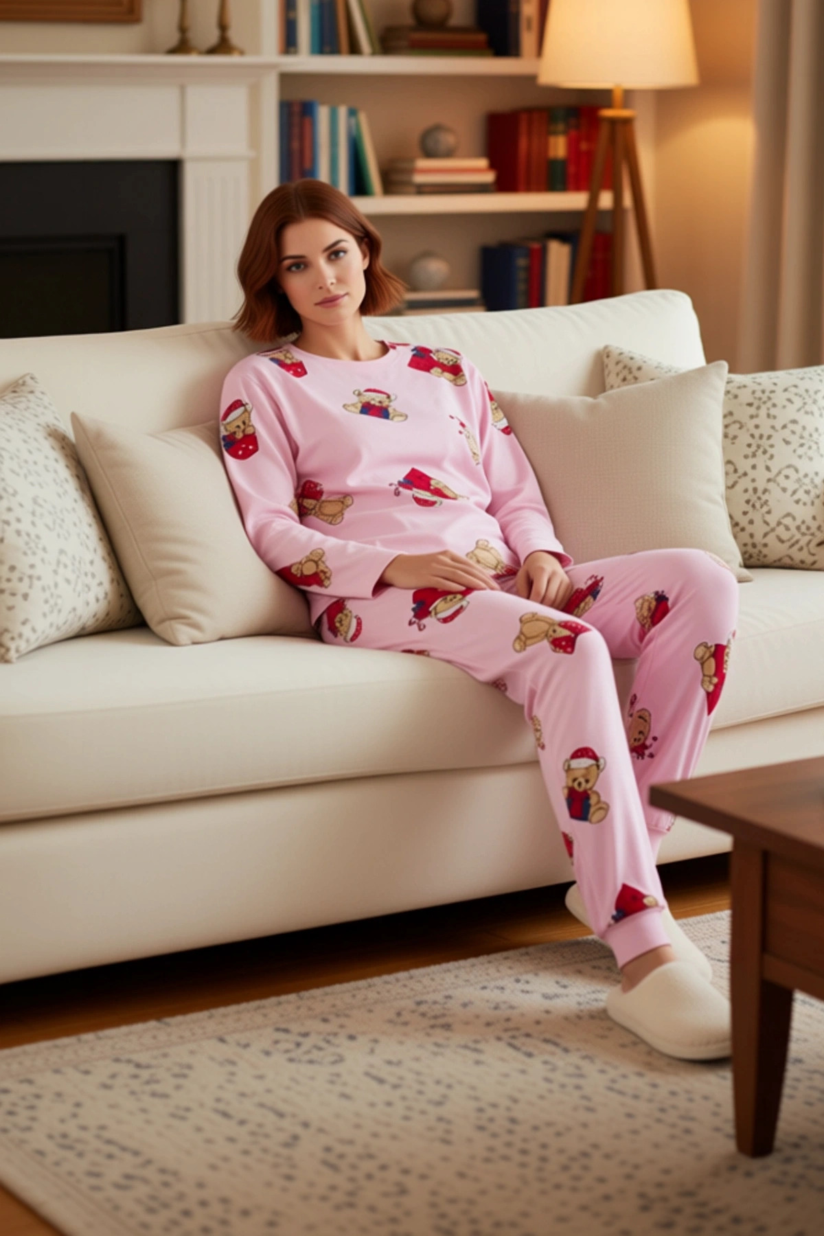 Kadın Kışlık Ayıcık Desenli Pamuklu Pijama Fonksiyonel Dayanıklı Kaliteli Konforlu Estetik