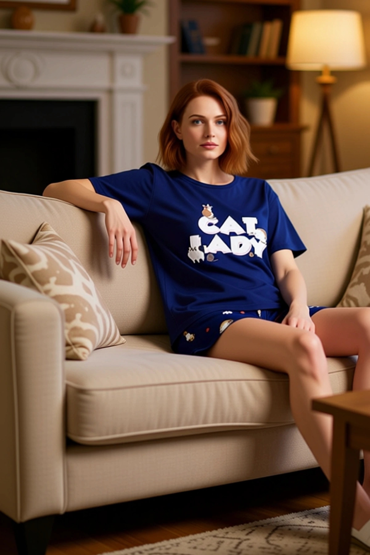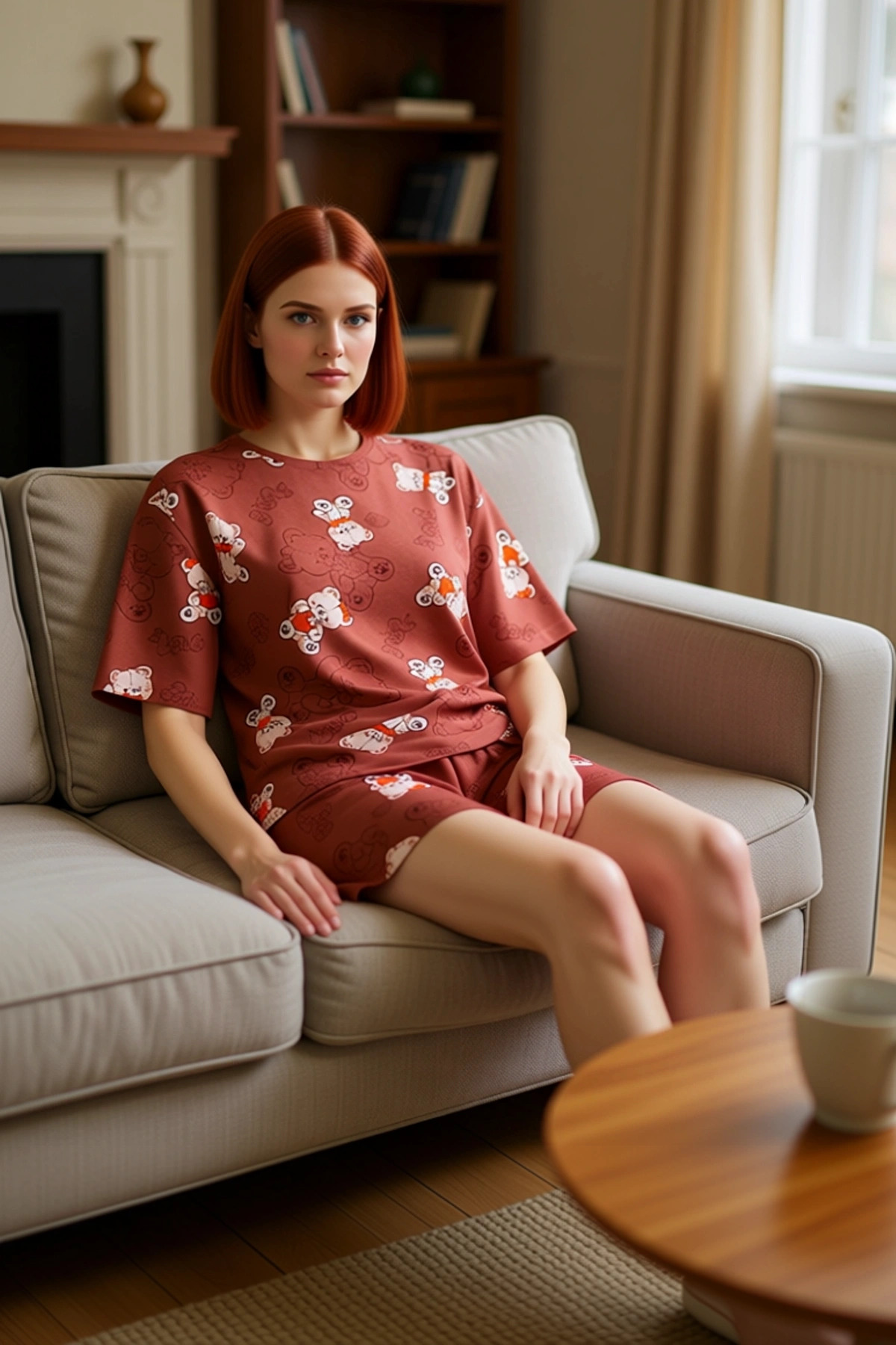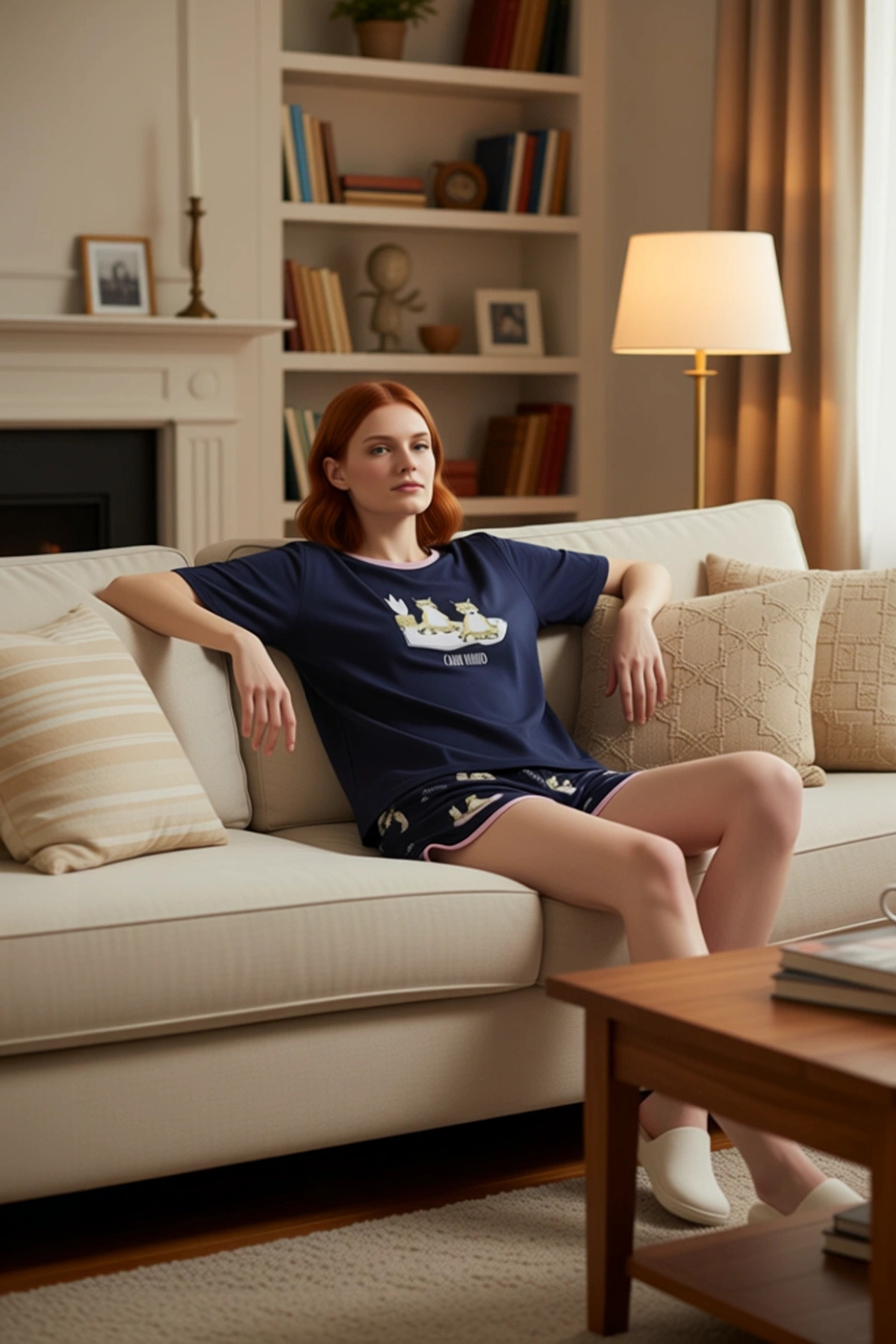 Kadın Kalpli Baskılı Pijama Gömlek ve Şort Seti Fonksiyonel Dayanıklı Kaliteli Konforlu Şık