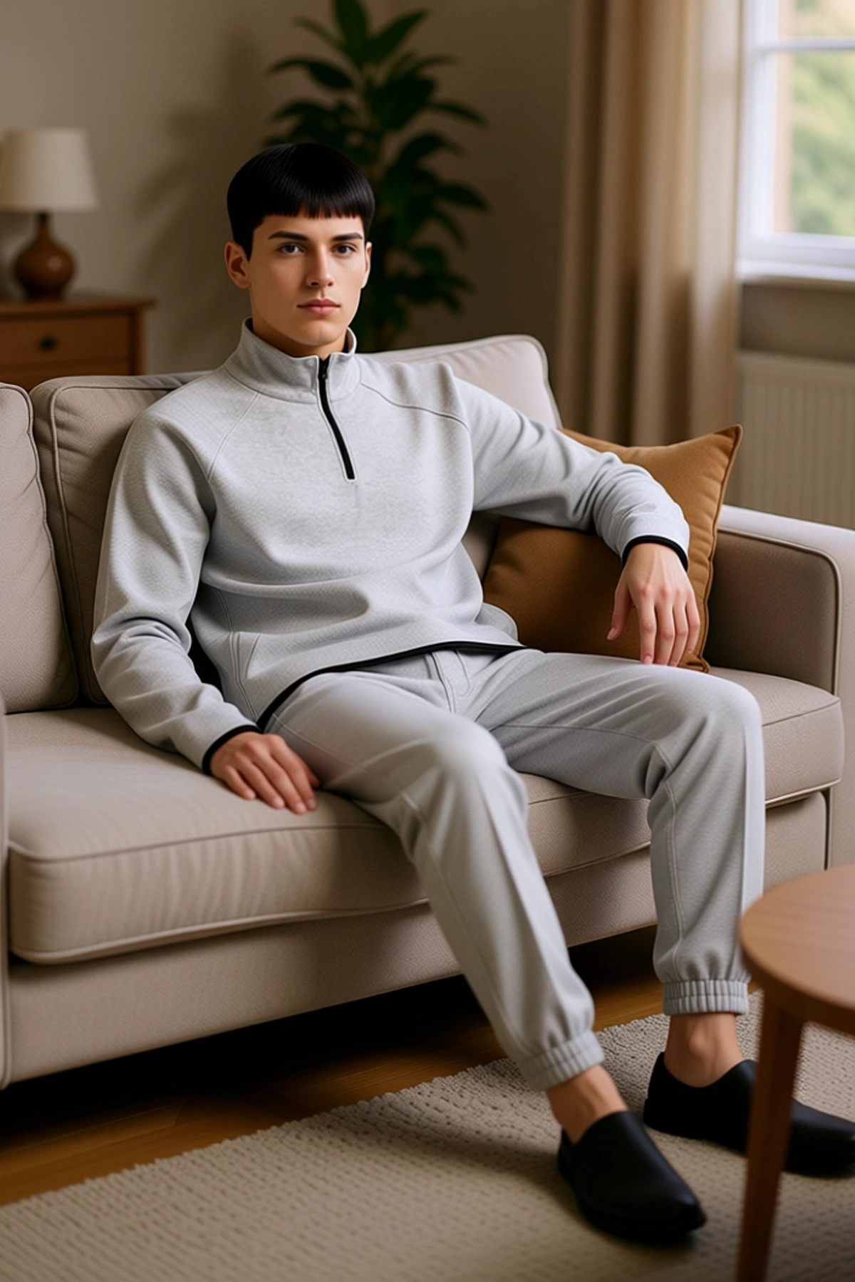 Kadin Ottoman Dokulu Fermuarli Sweatshirt ve Pantolon Ev Giyim Takımı Fonksiyonel Kaliteli