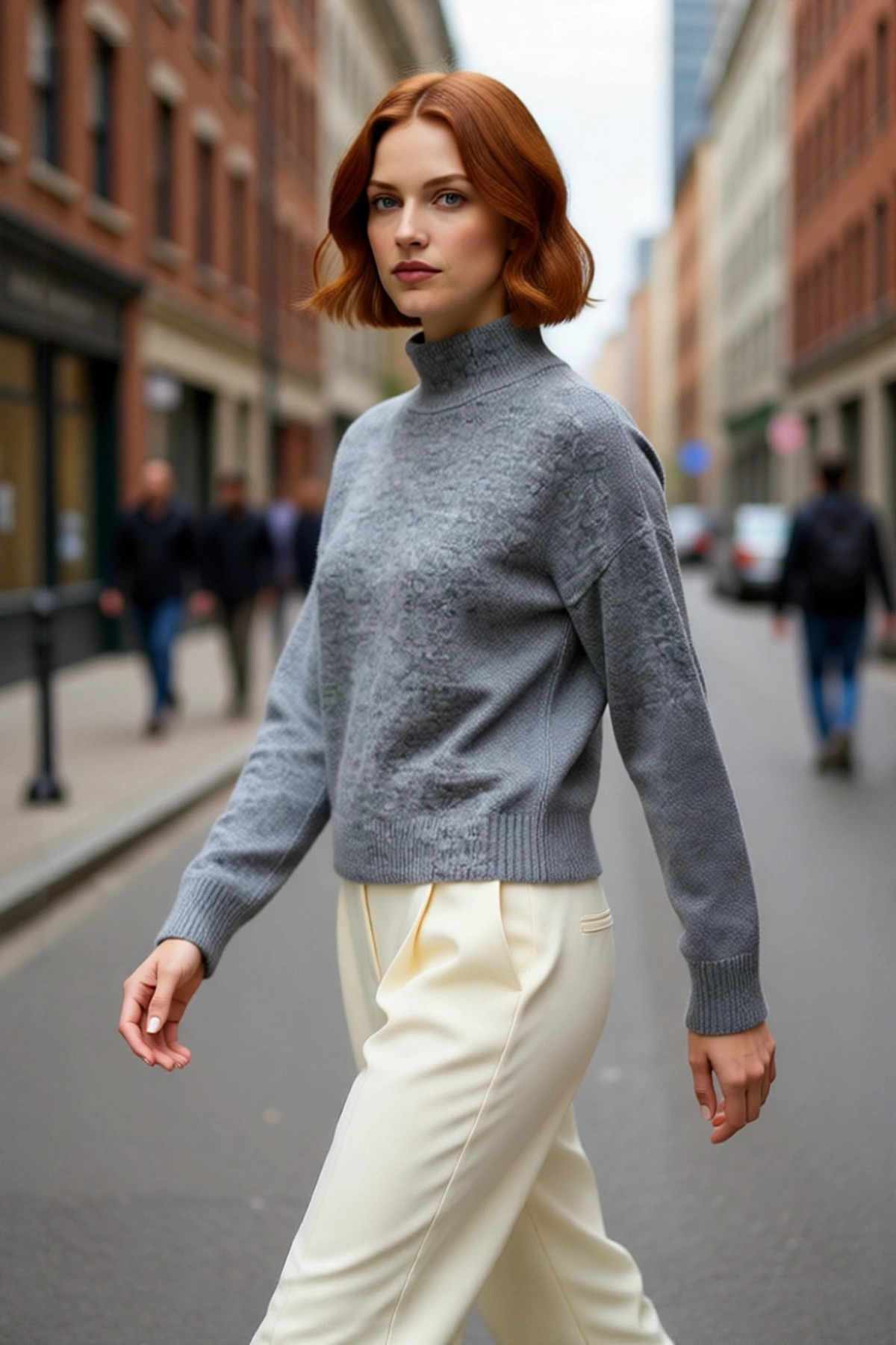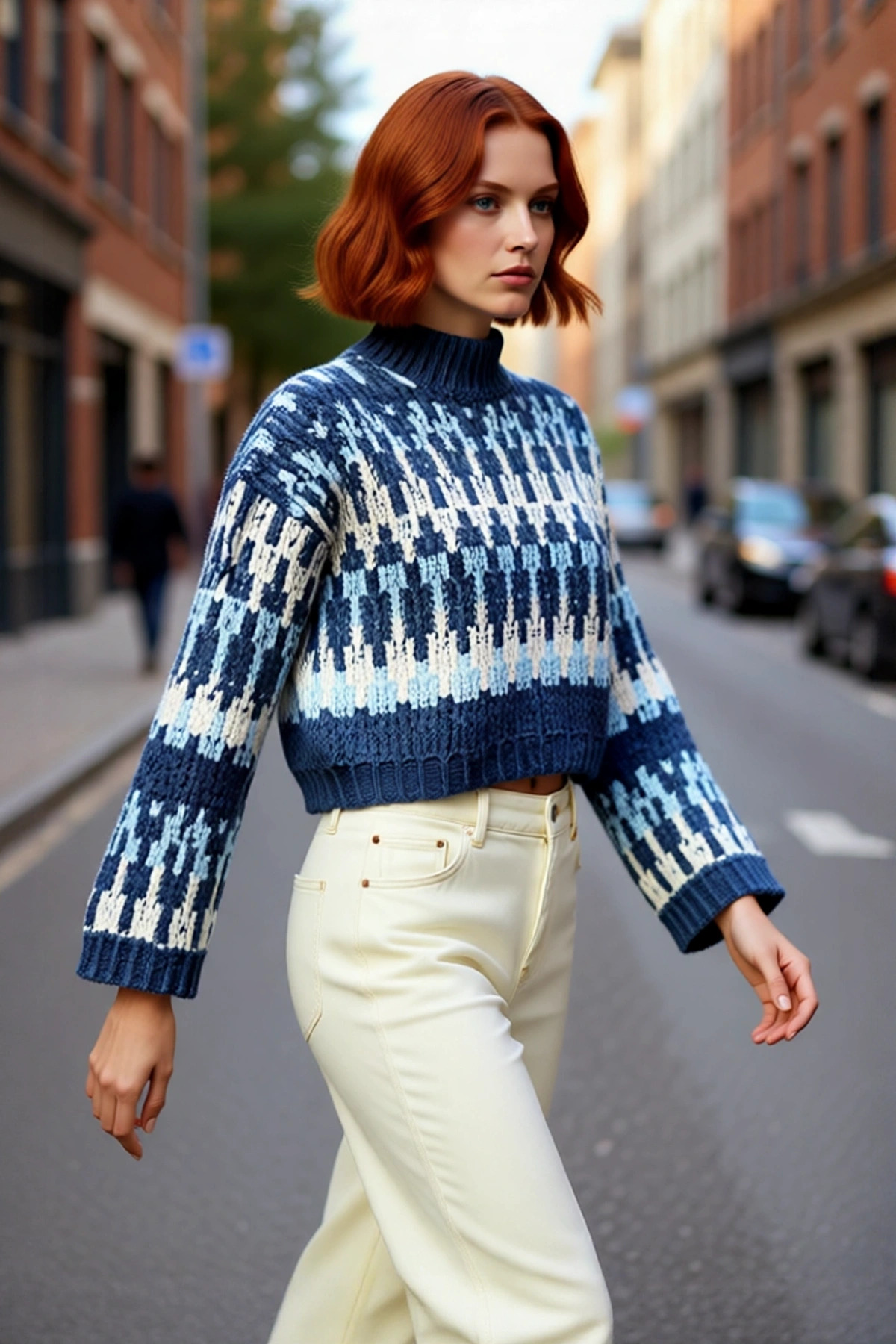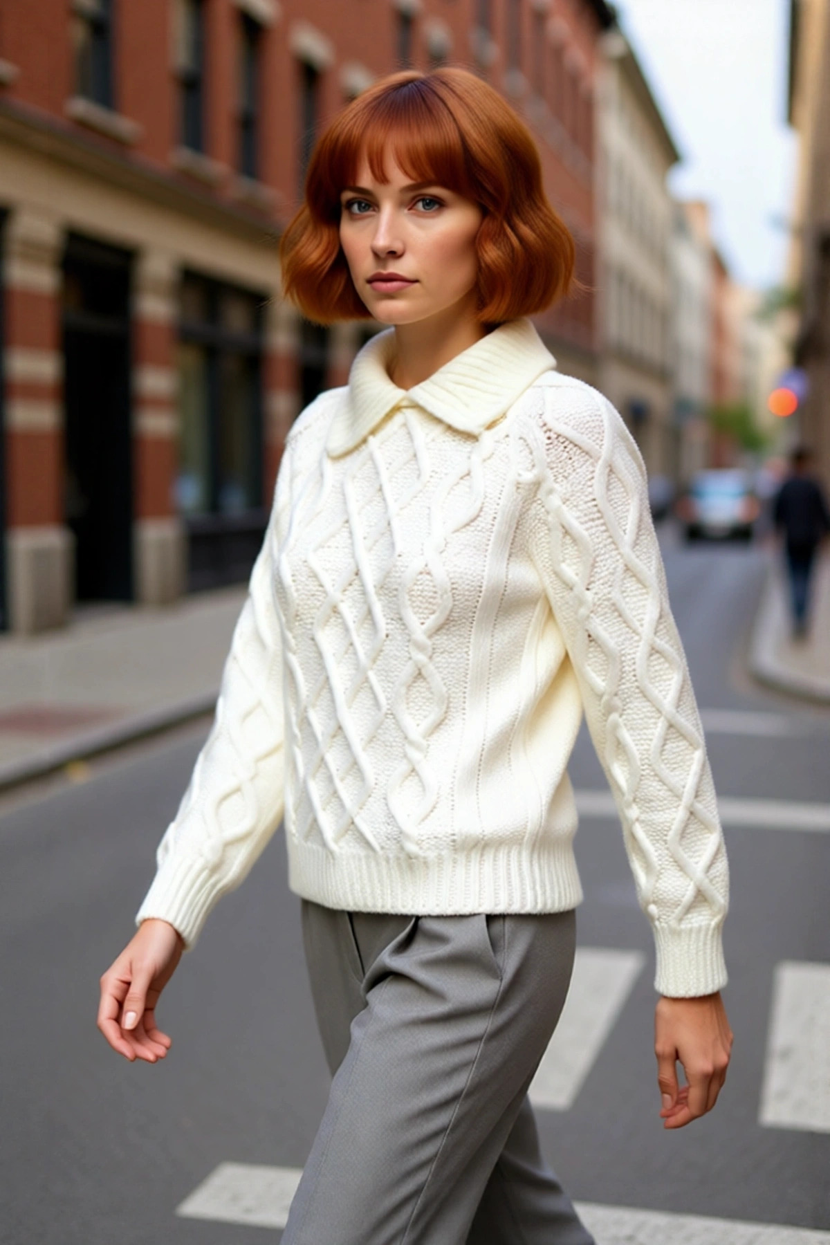 Kadınlar İçin Ekru Casual Gömlek Yaka Saç Örgü Desenli Regular Triko Kazak Sonbahar Kış Kaliteli