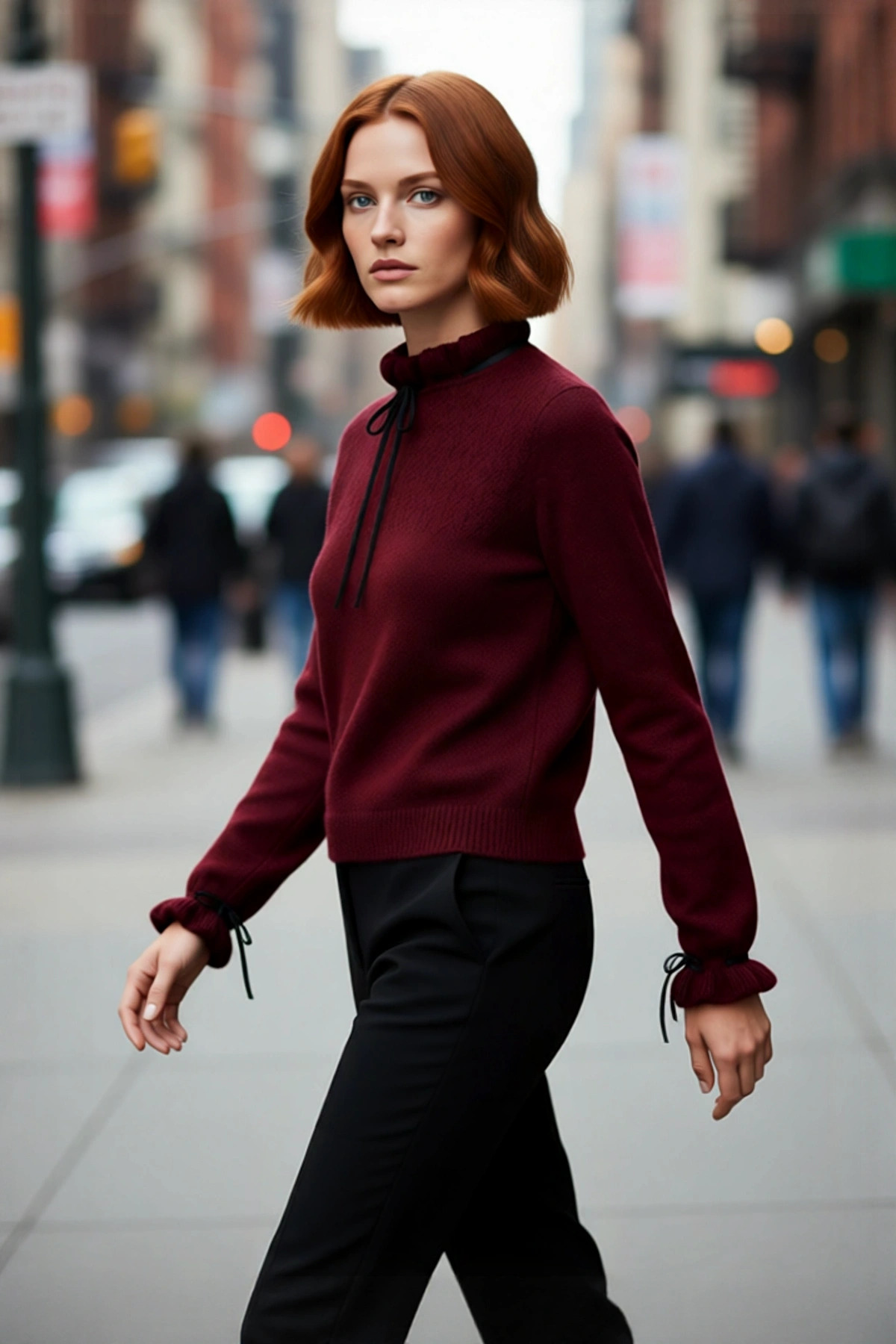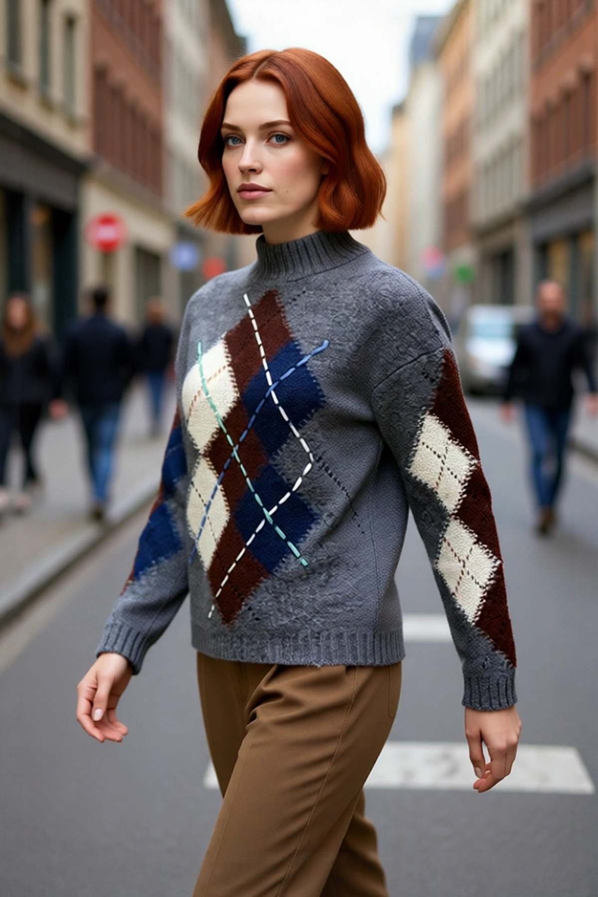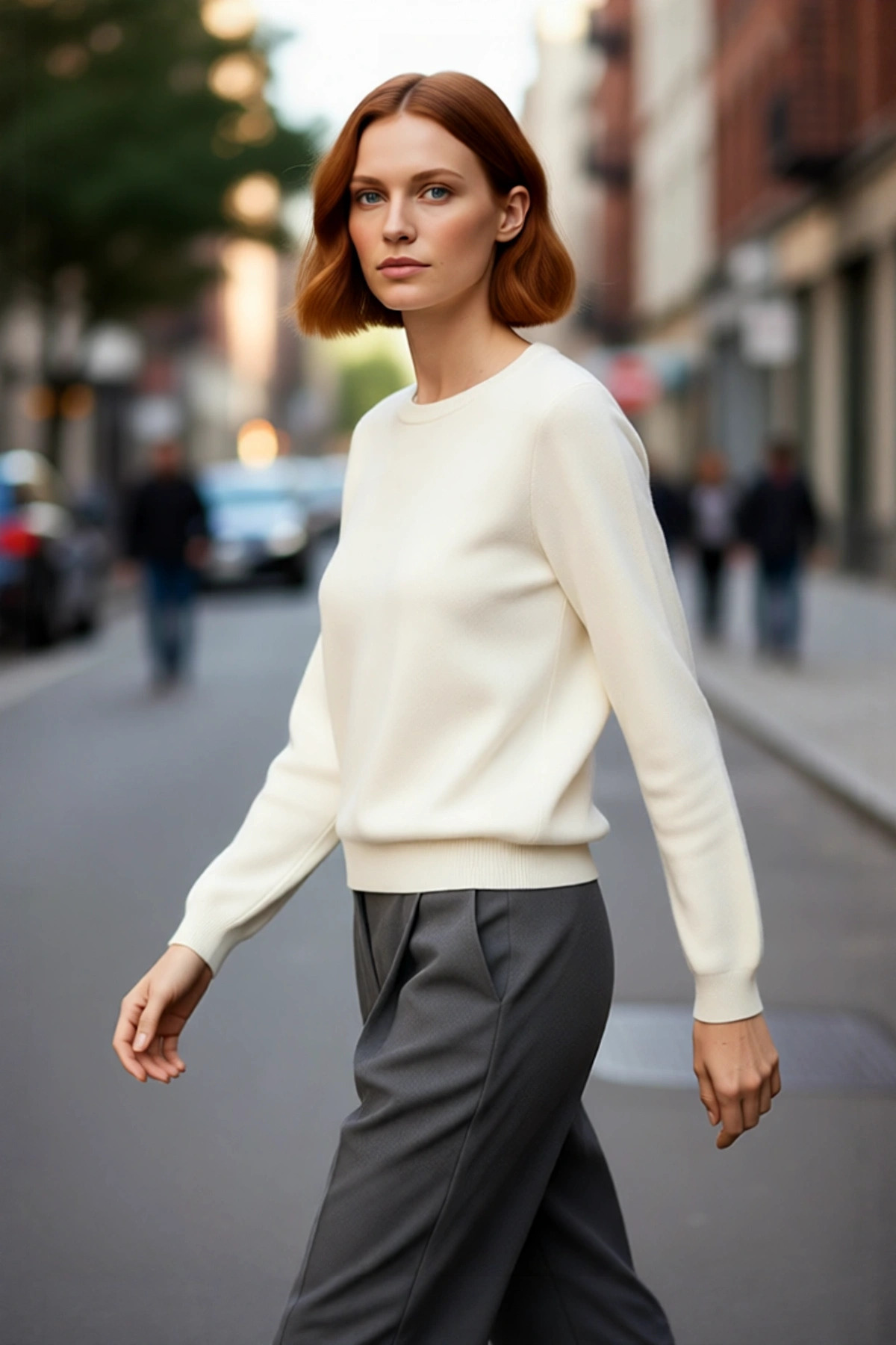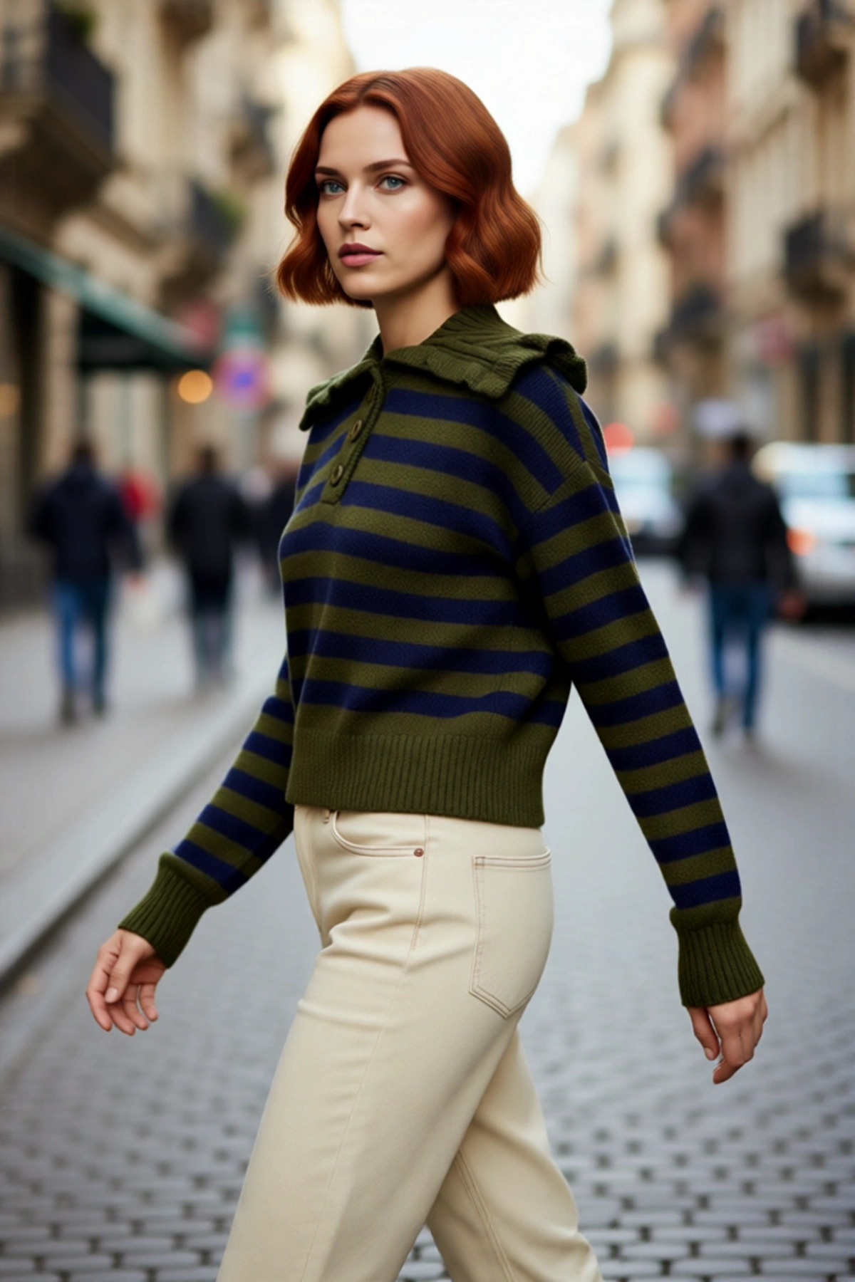 Kadınlar İçin Ekru Casual Gömlek Yaka Saç Örgü Desenli Regular Triko Kazak Sonbahar Kış Kaliteli