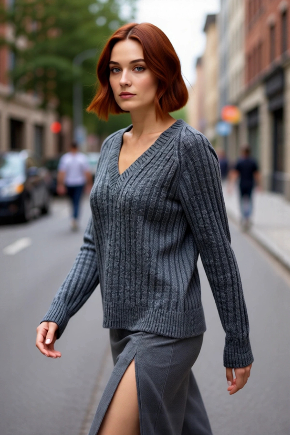 Kadın Uzun Boy Orta Kalınlık Fitilli Triko Kazak V Yaka Reglan Kol Soğuk Havalarda Ideal Seçim