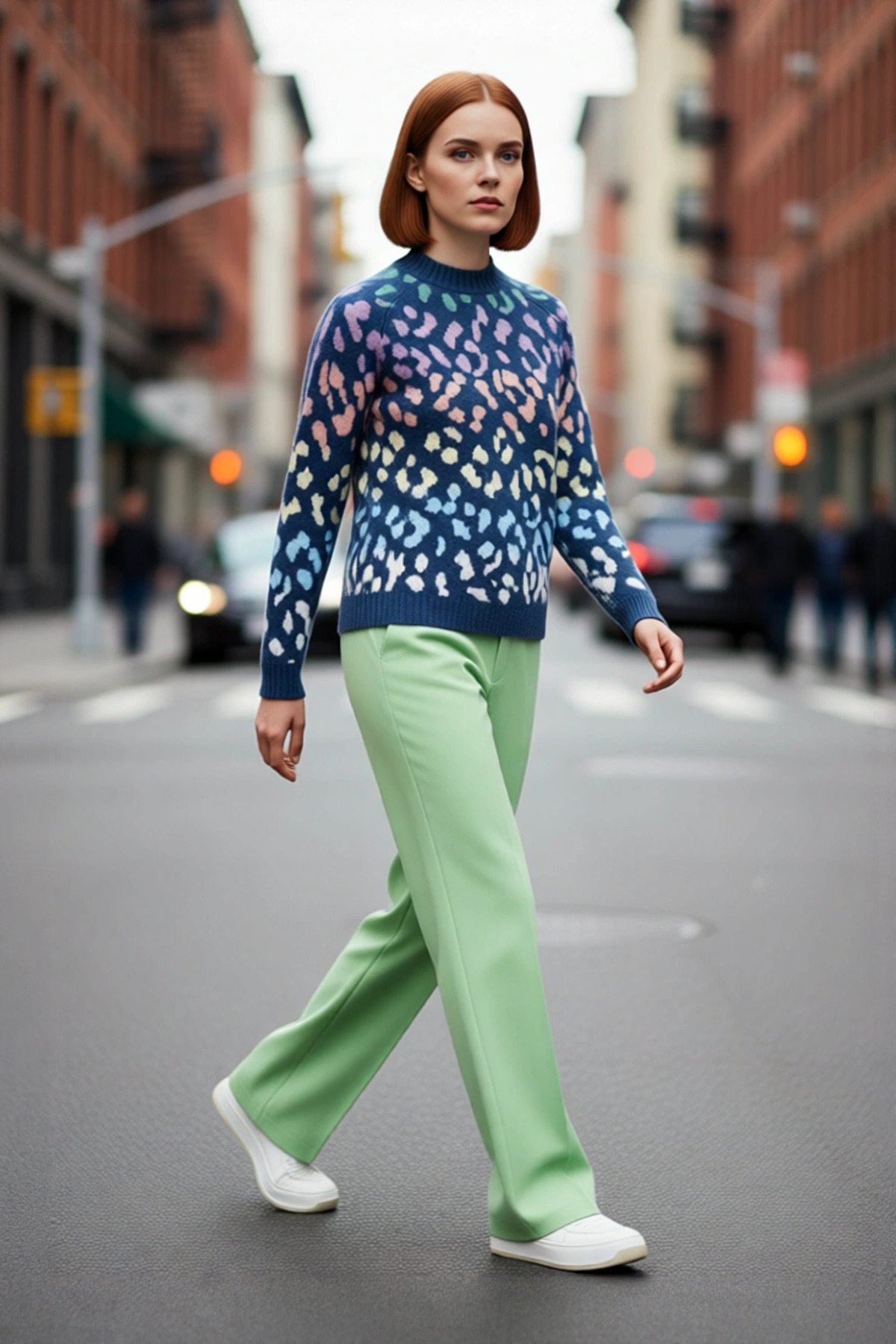Kadın Oversize Animal Desenli Triko Kazak Konforlu Bisiklet Yaka Uzun Reglan Kol Kış Stiliyle Şıklık
