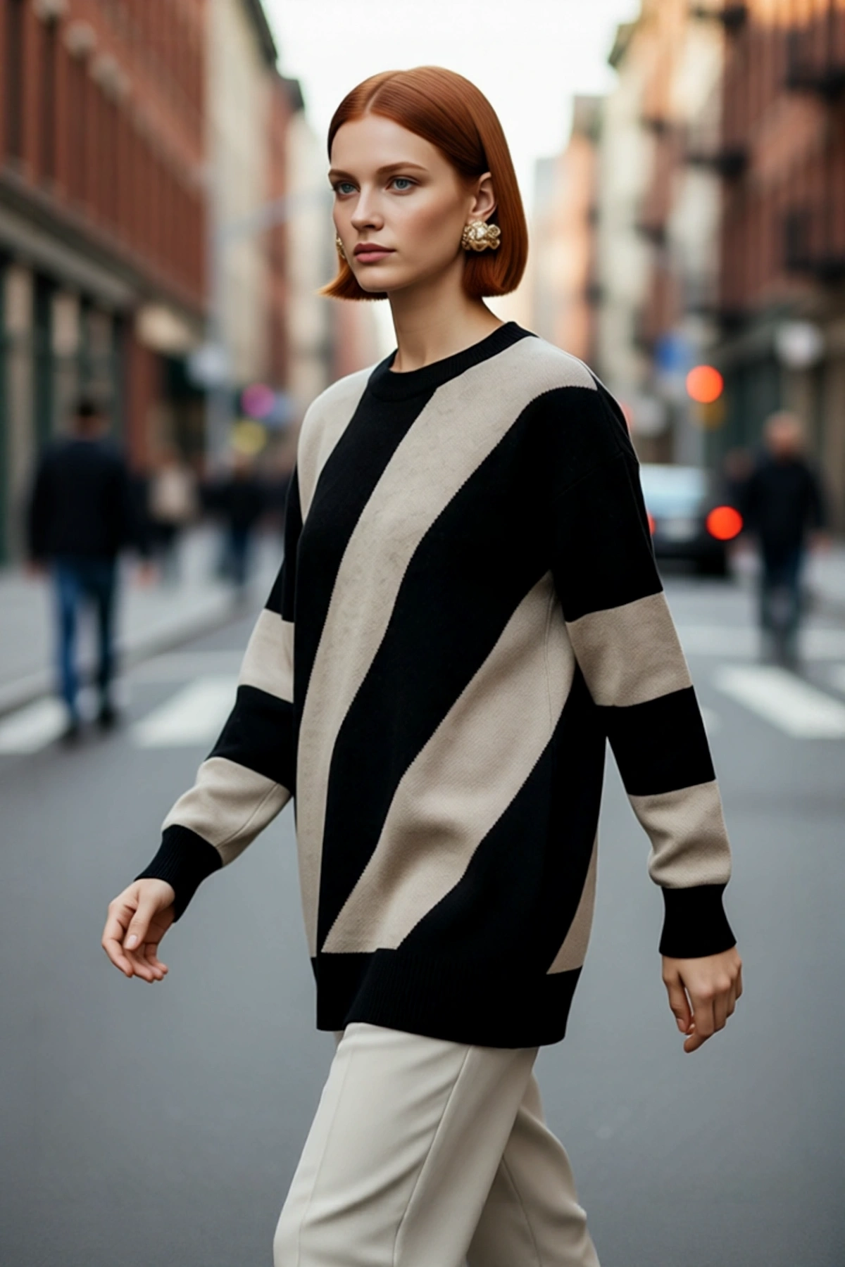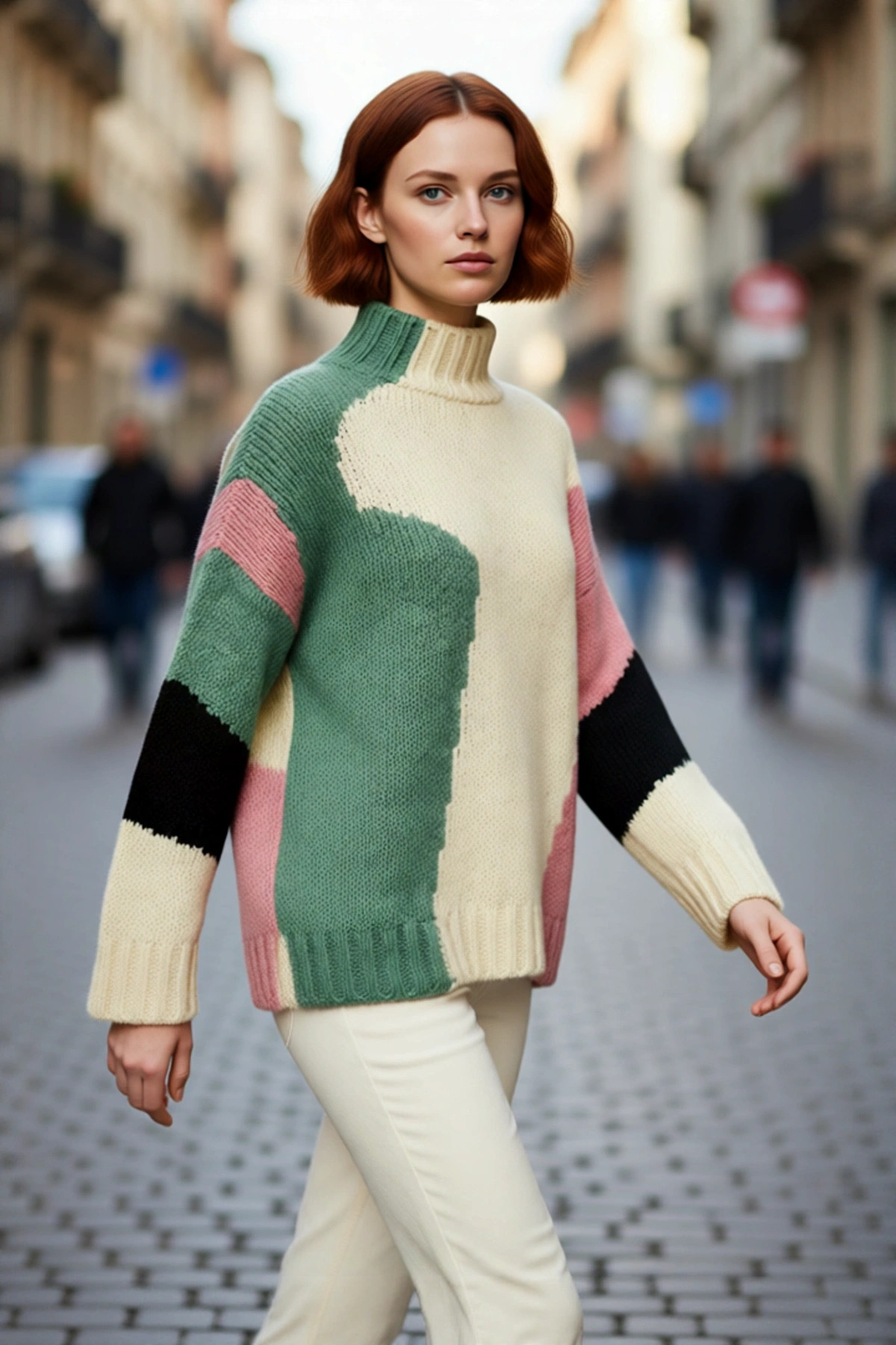 Kadın Şık Dik Yaka Oversize Renk Bloklu Düşük Kol Uzun Triko Kazak Kış Modasına Yeni Bir Soluk