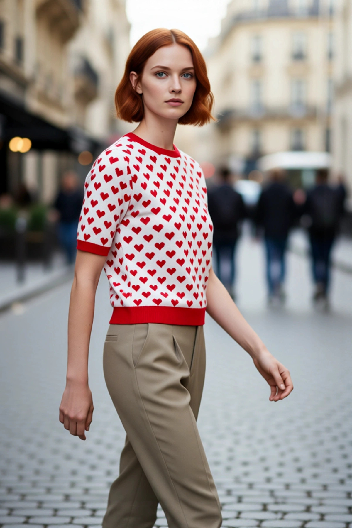 Kadınlara Özel Ekru Regular Kalıp Bisiklet Yaka Kalp İşlemeli Triko Kazak Kış Günleri İçin Harika