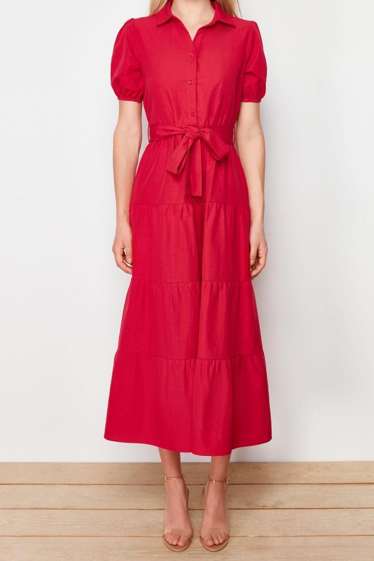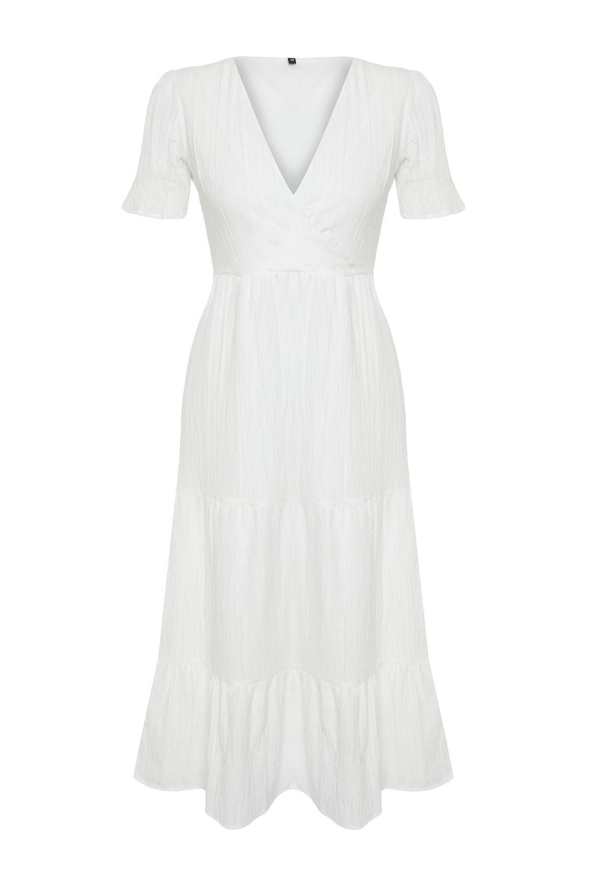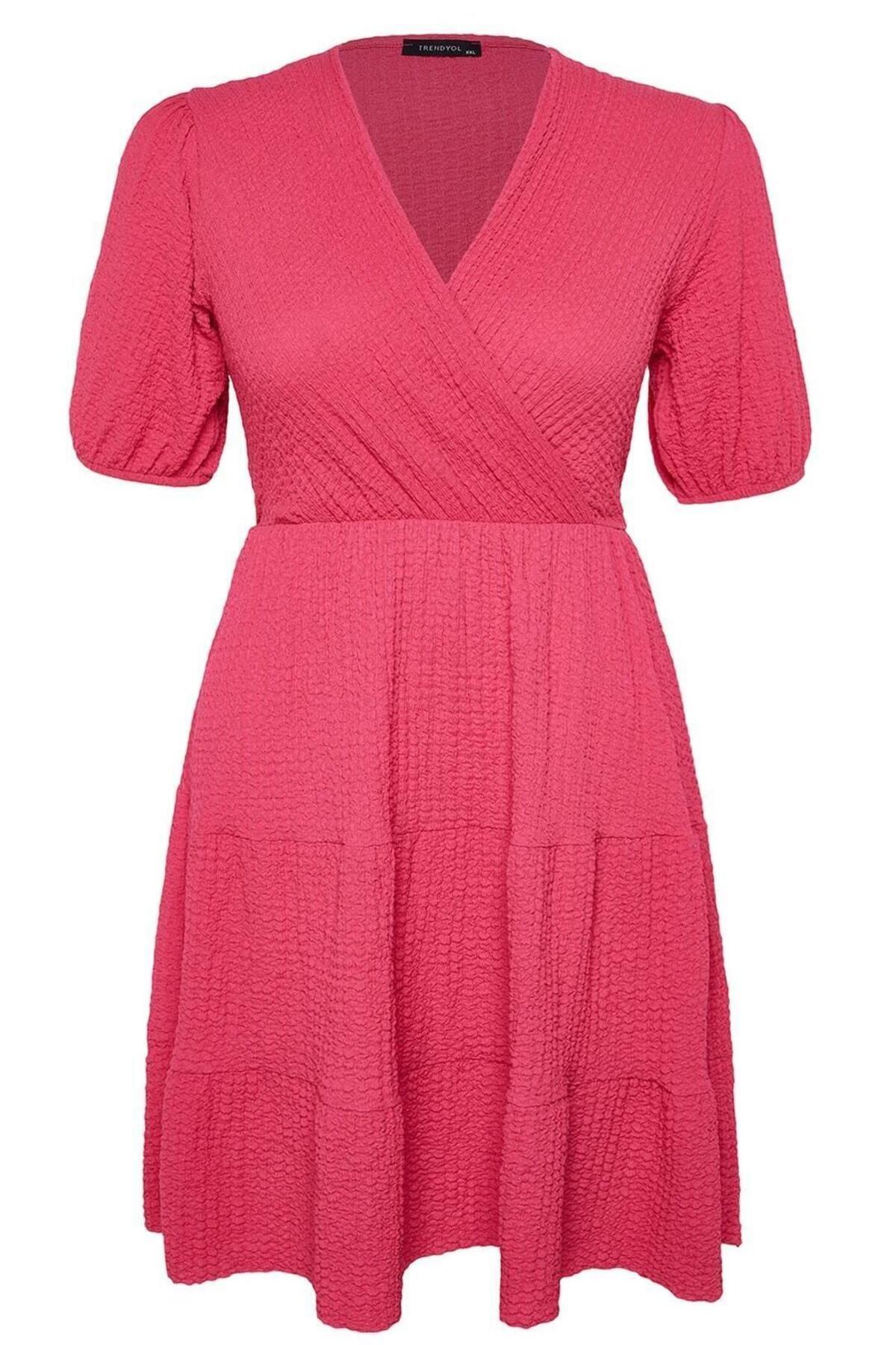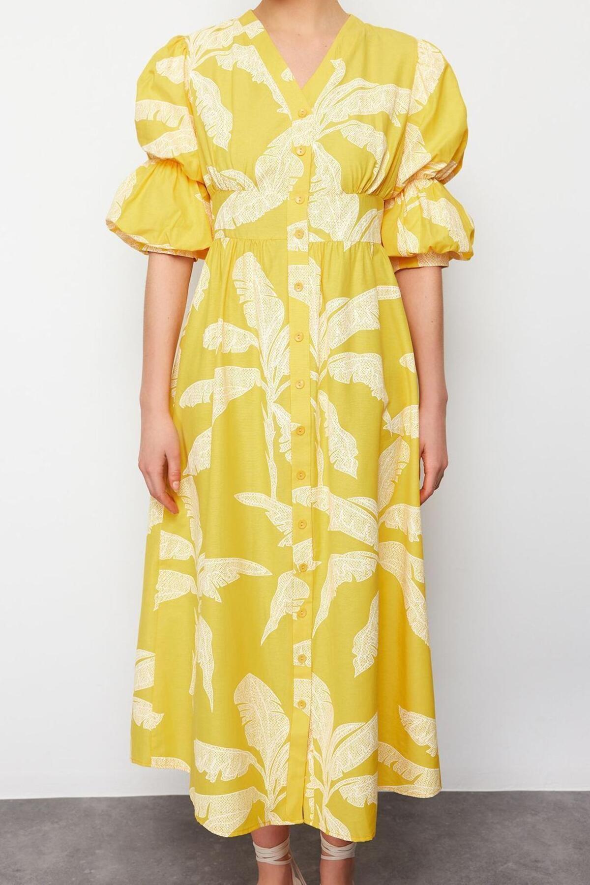 Moda Rahat Casual Günlük Shally Dokuma Kare Yaka Kısa Kol Eteği Fırfırlı Maxi Boy Büyük Beden Elbise