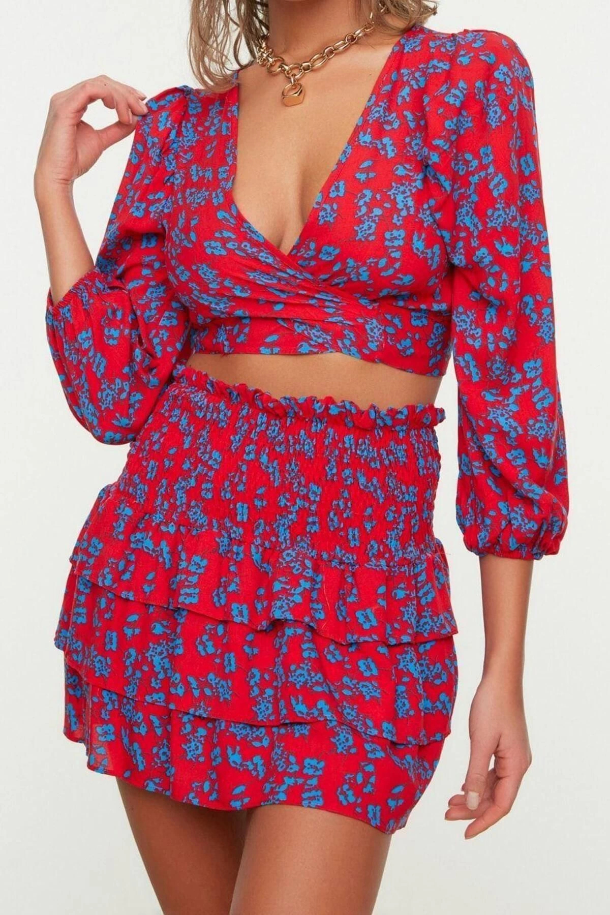 Dokuma Polyester Mini Etek Bluz Takımı Regular Kalıp Yazlık Şıklık Yüksek Kalite Uzun Ömürlü