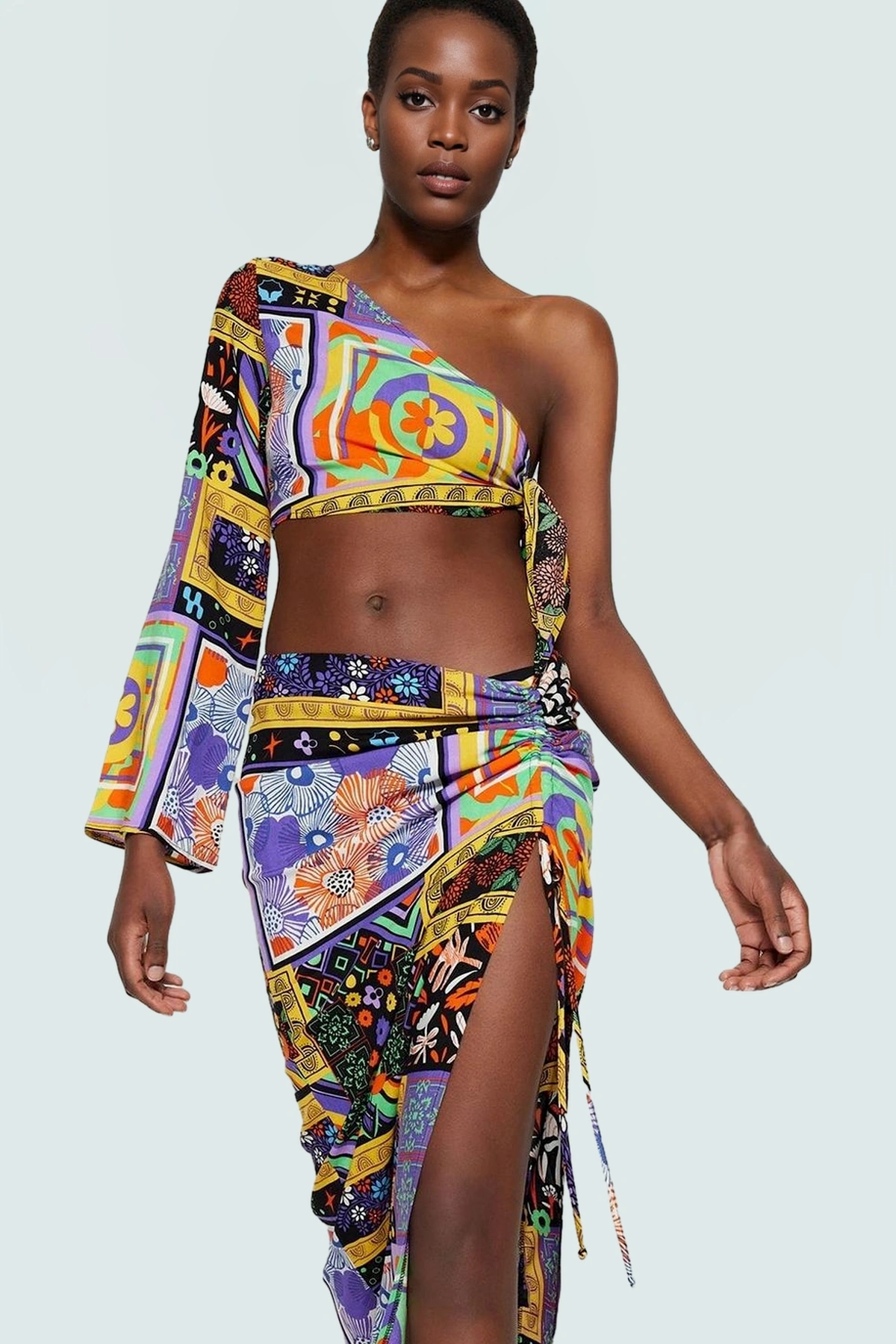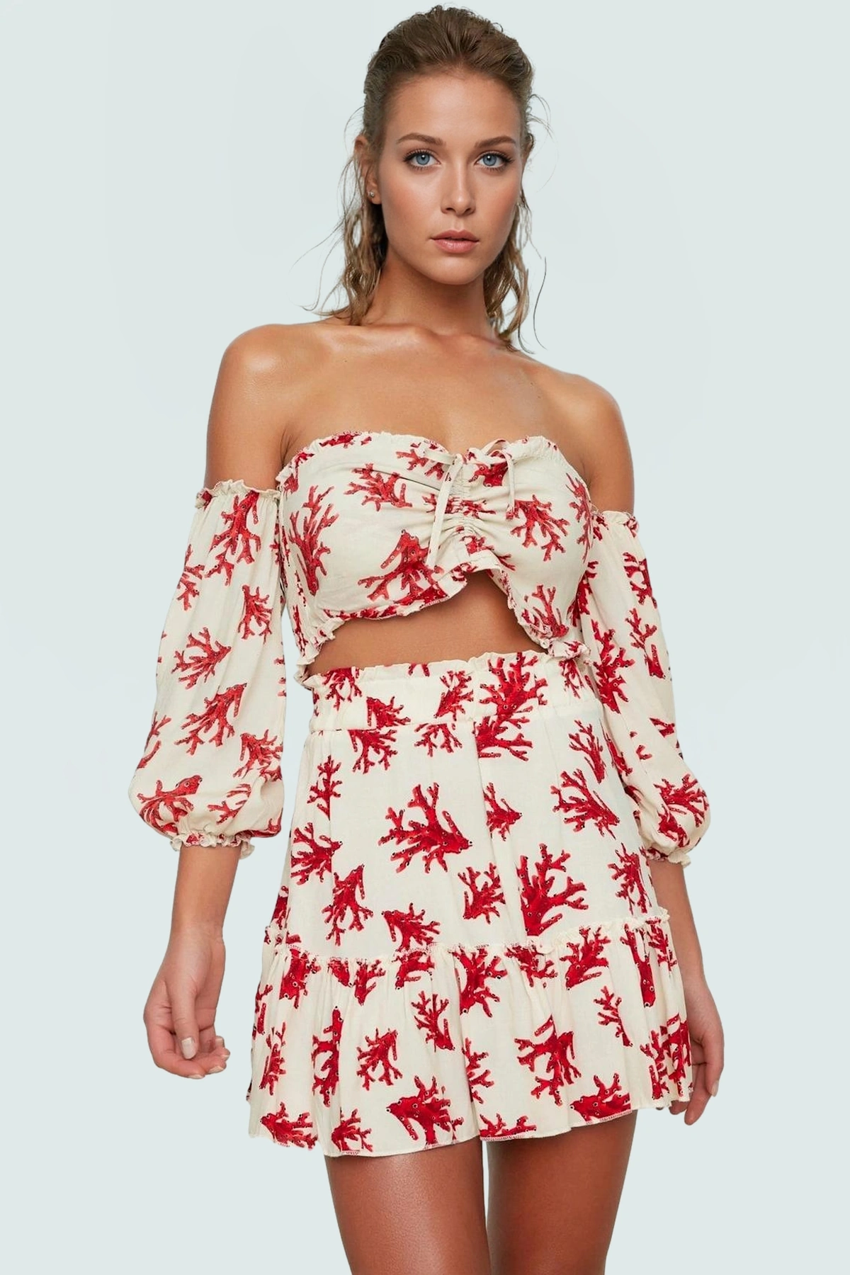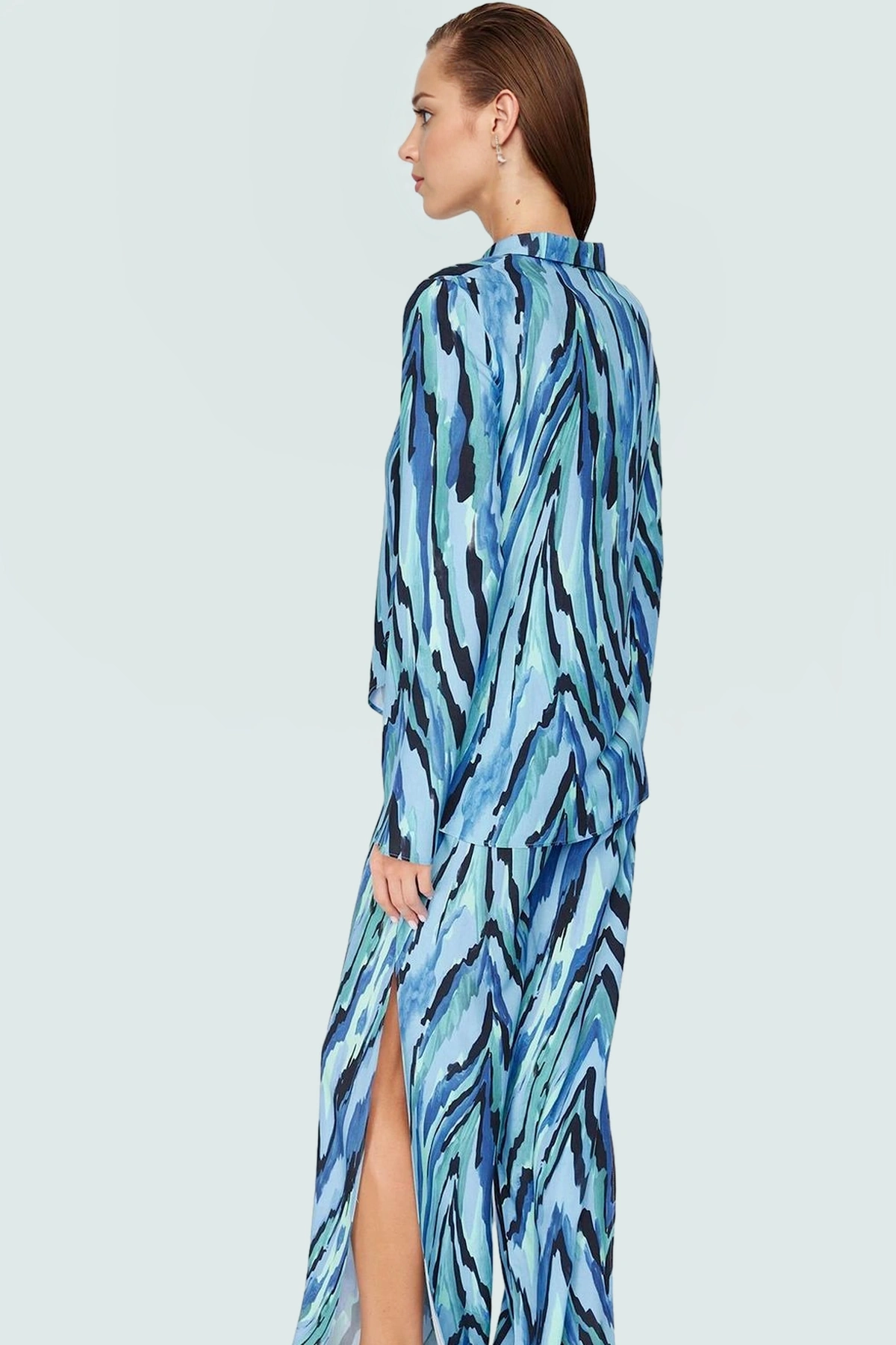 Su Altı Desenli Viskoz Bluz Etek Takım Rahatlık ve Şıklığı Bir Arada Rahat Şık Premium Kalite