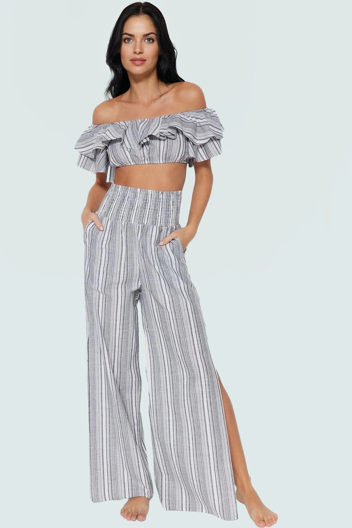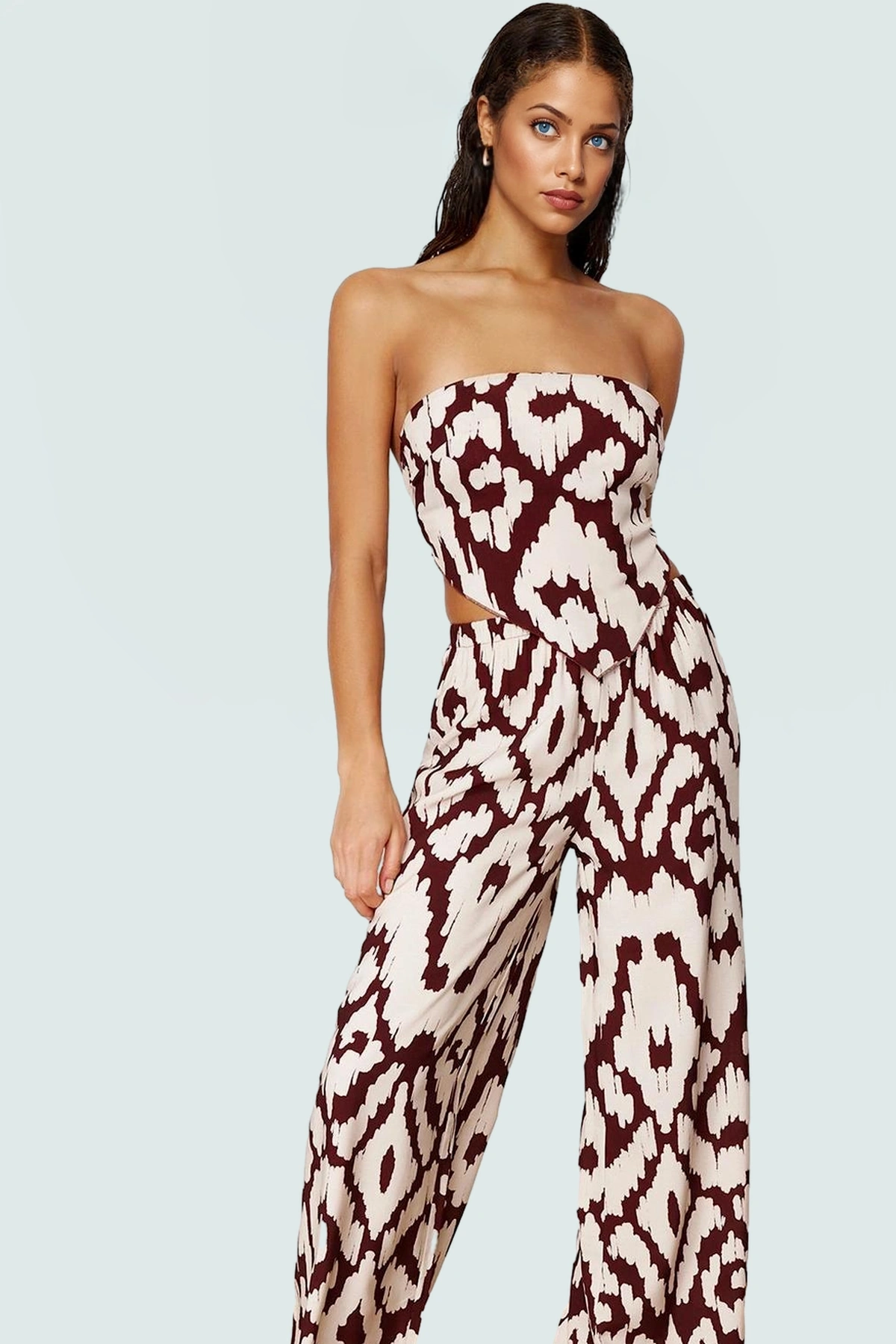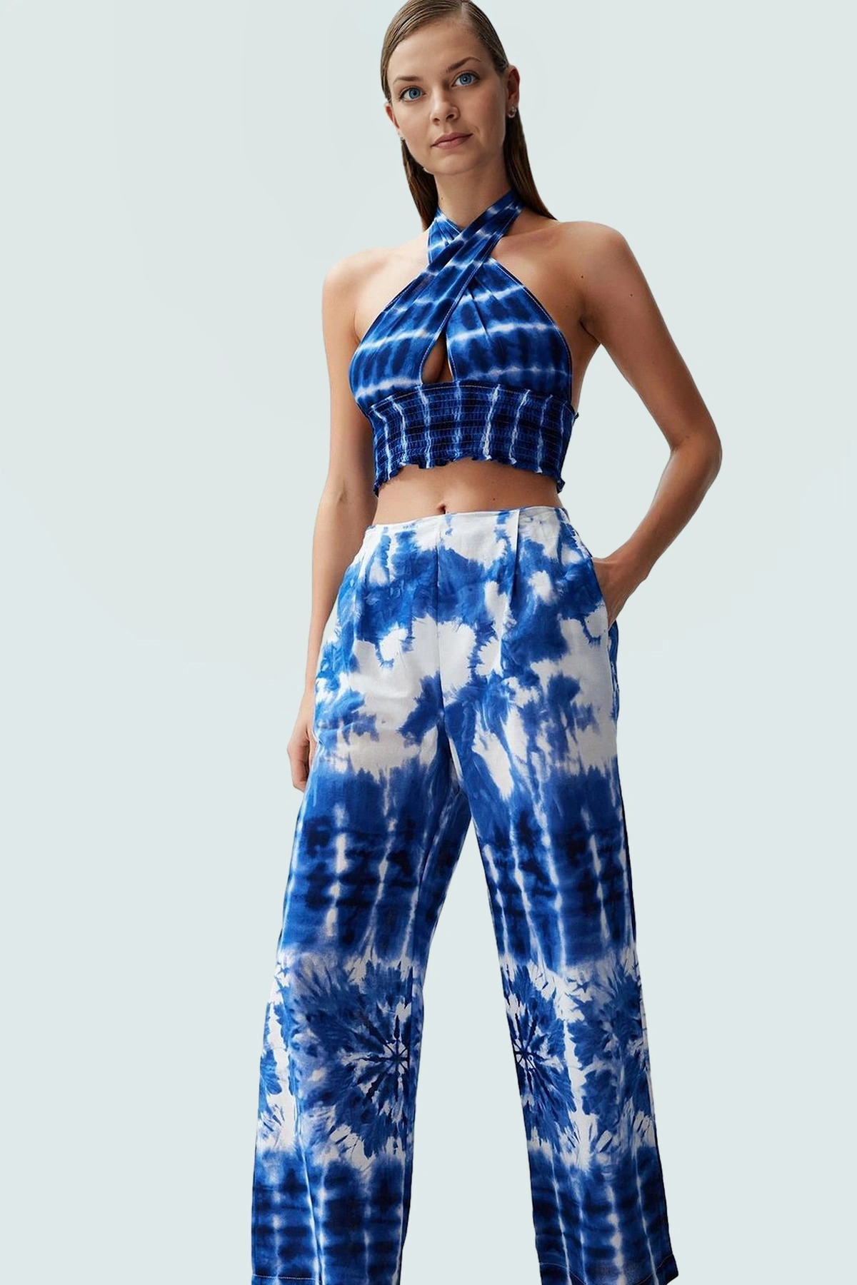 Şal Desenli Kolsuz Viskoz Bluz Pantolon Takım Plaj Modası Seçkin Malzeme Zarifane Tasarım