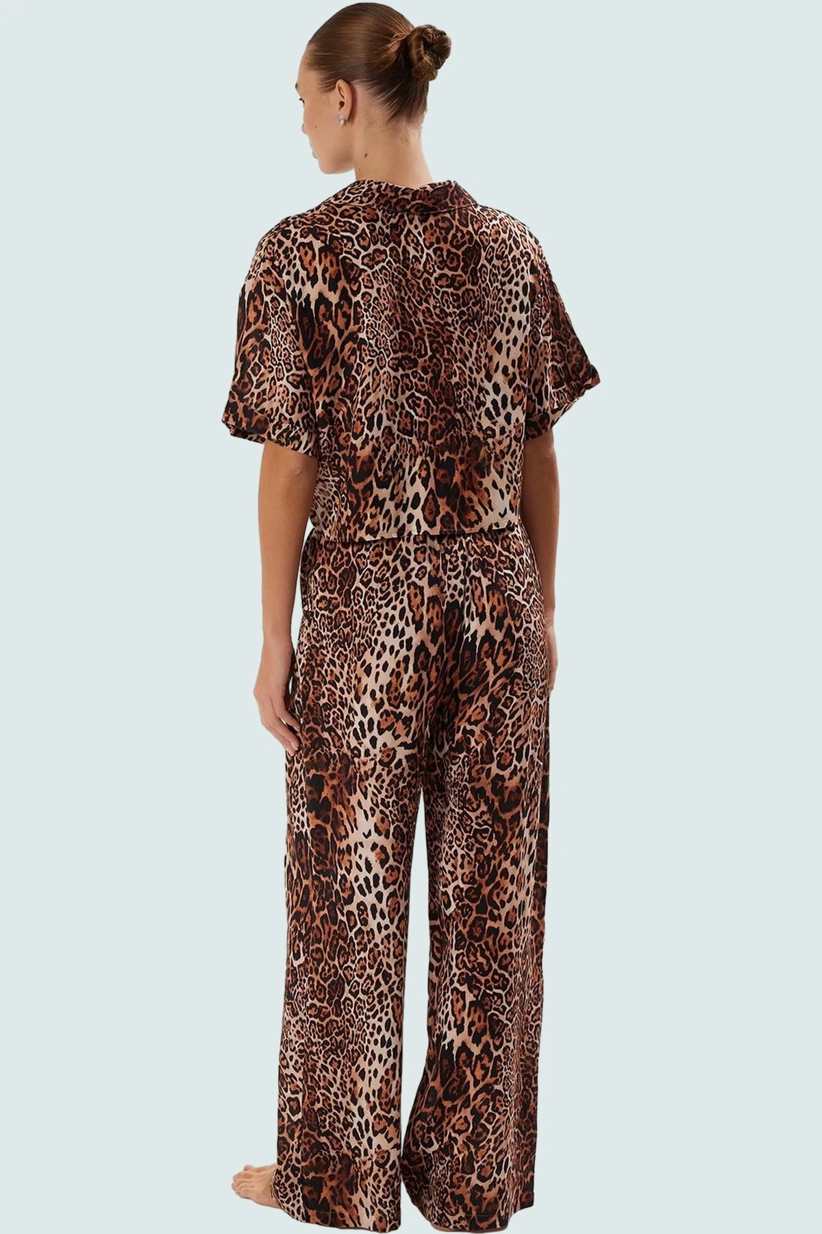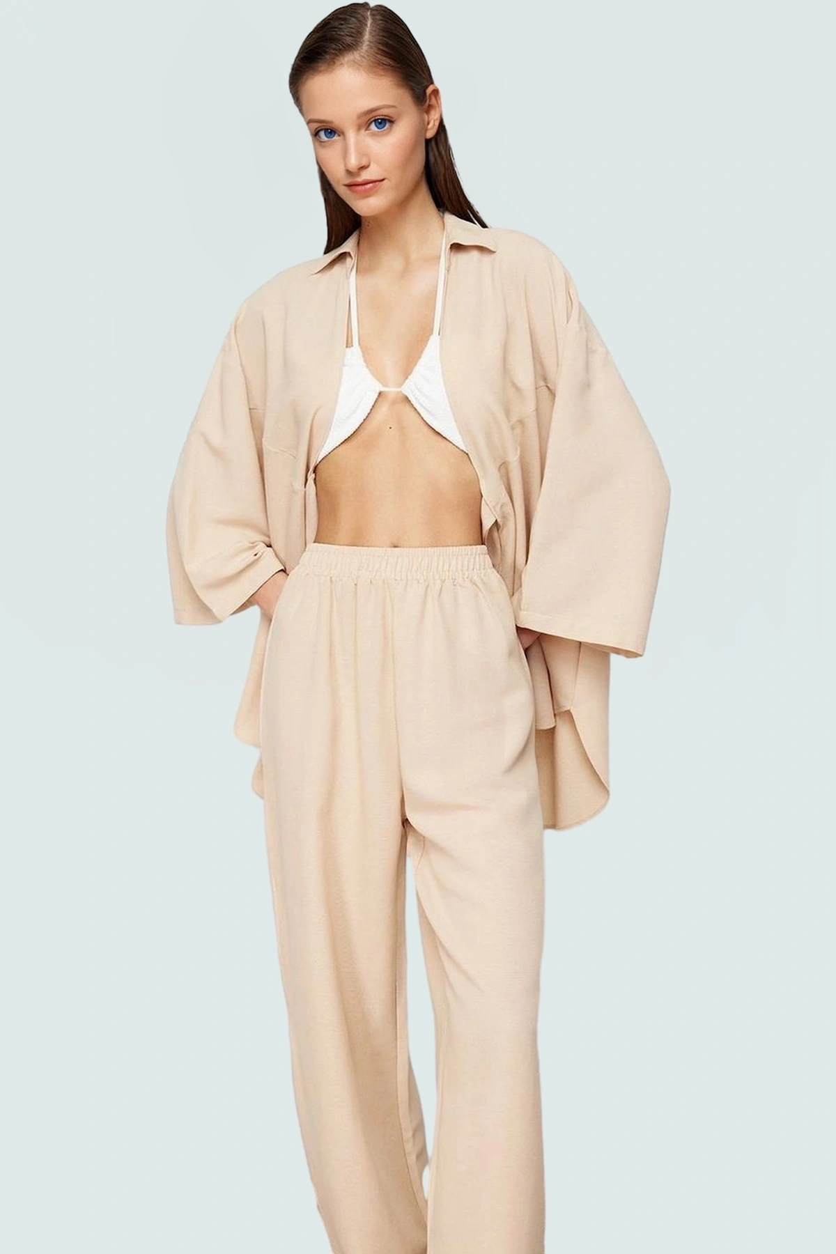Rahat Oversize Pantolon Takım Keten Karışımlı Gömlek Yaka Plaj ve Günlük Yüksek Kalite