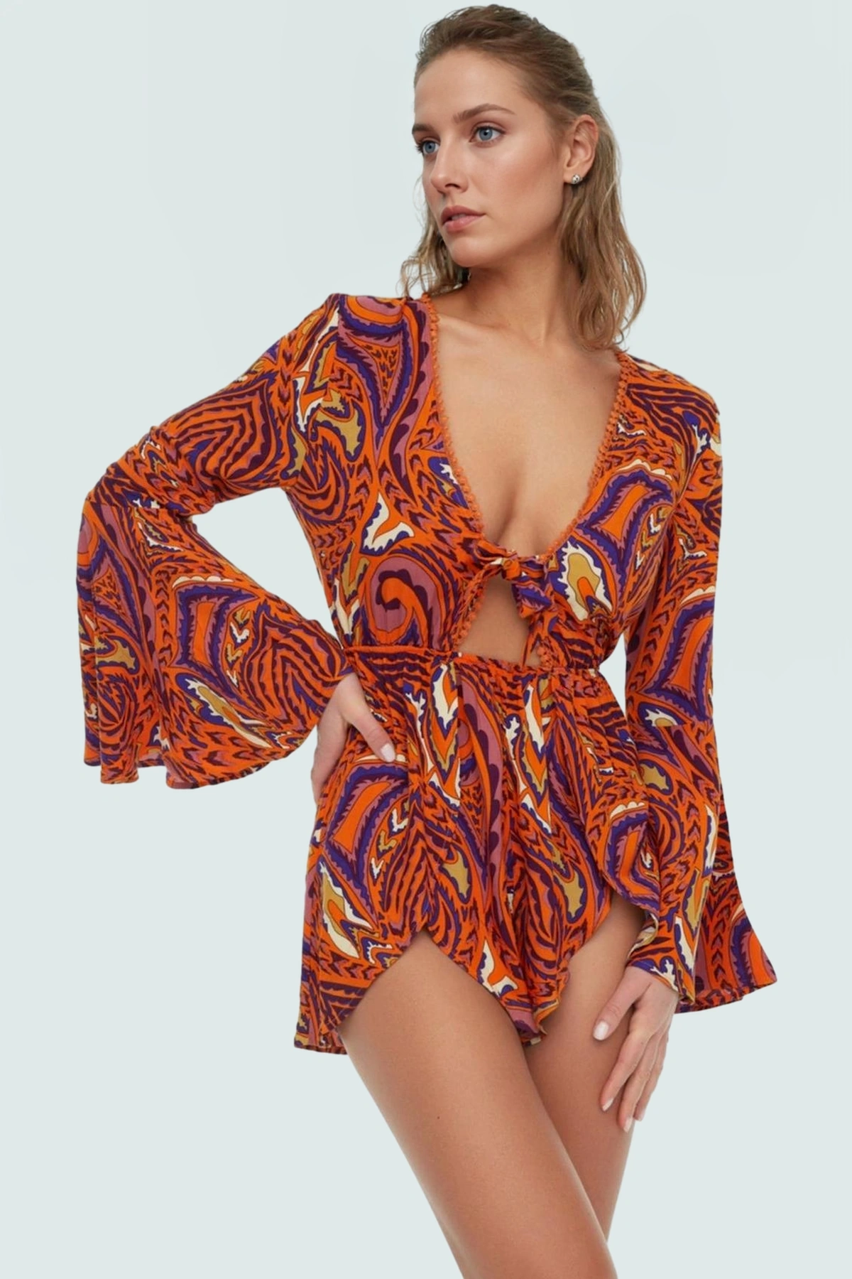 Rahat Viskoz Kumaştan Şık ve Çok Soyut Desenli Plaj Takımı Uzun Ömürlü Dayanıklı Malzeme