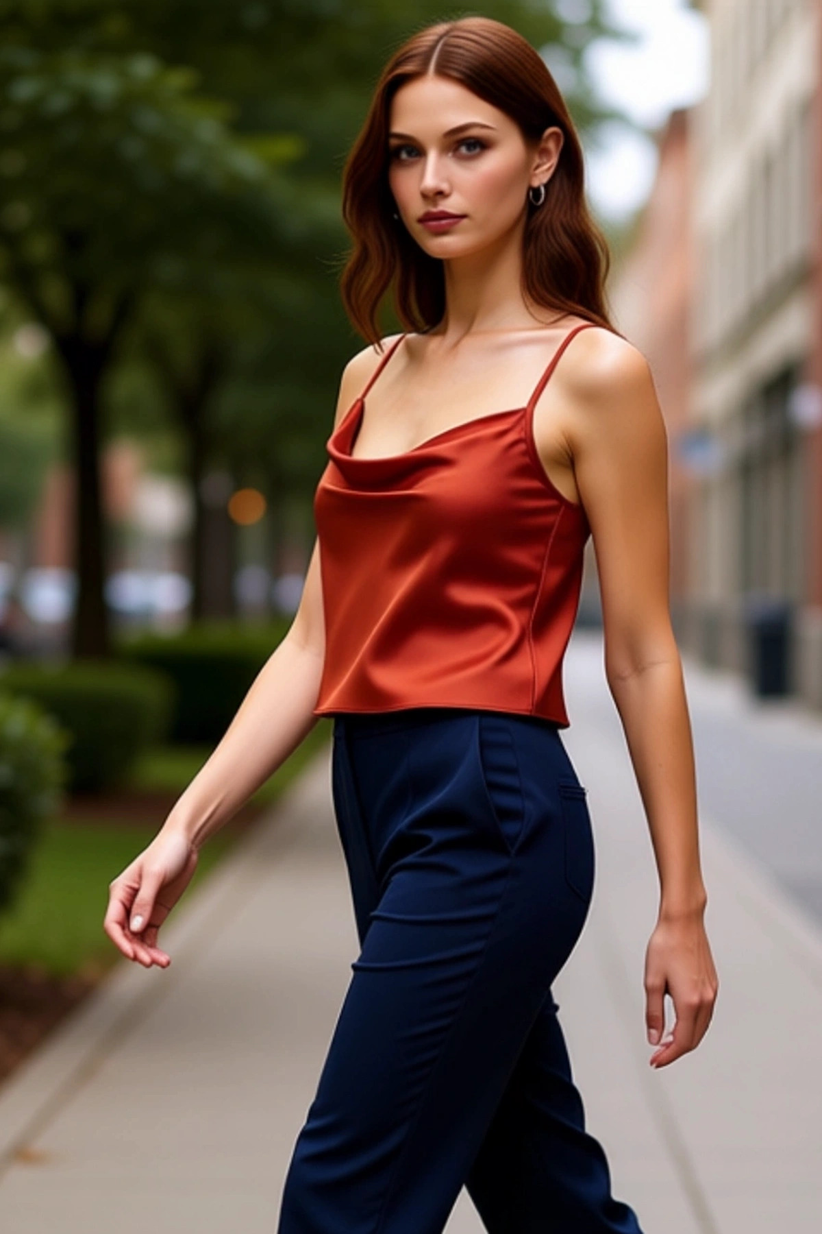 Kadın Saten Dokuma Regular Kesim Kolsuz Degaje Yaka Bluz Yazlık Casual Günlük Kullanım İçin Şık Bir