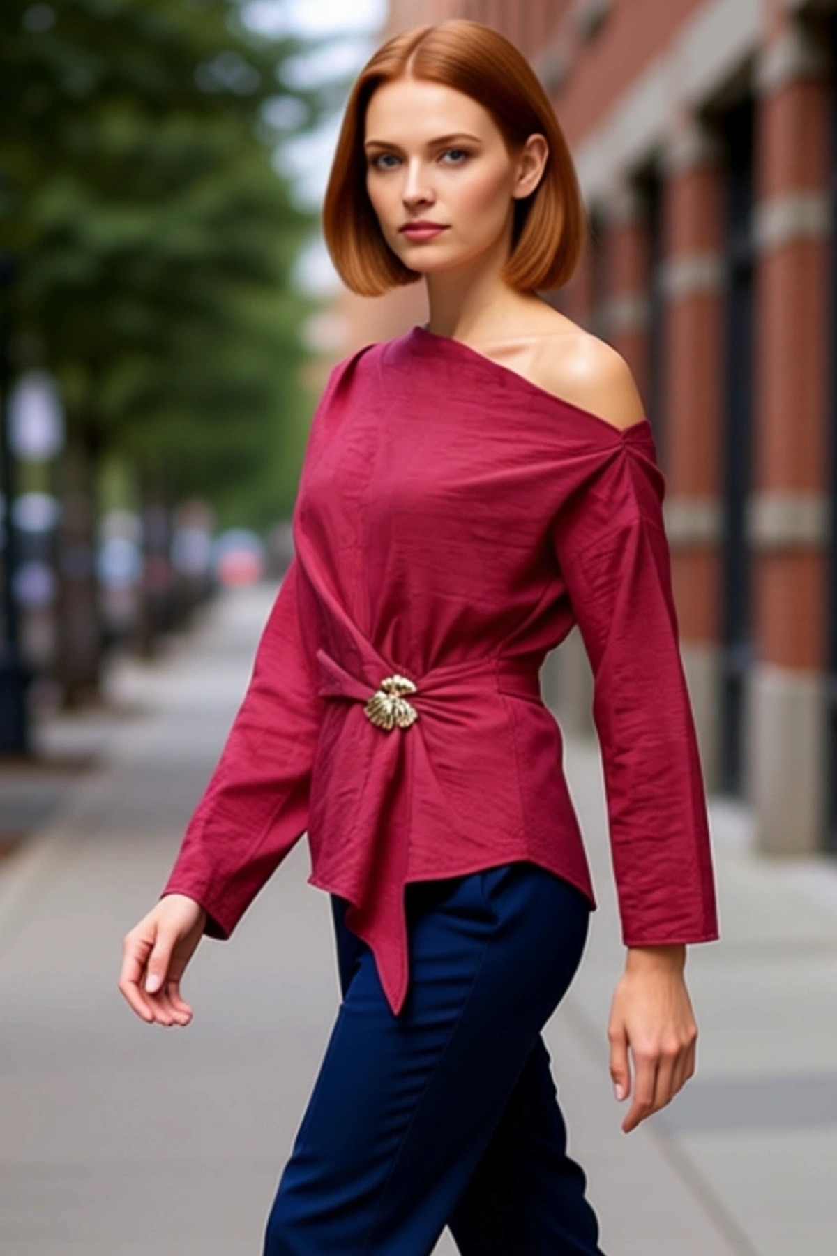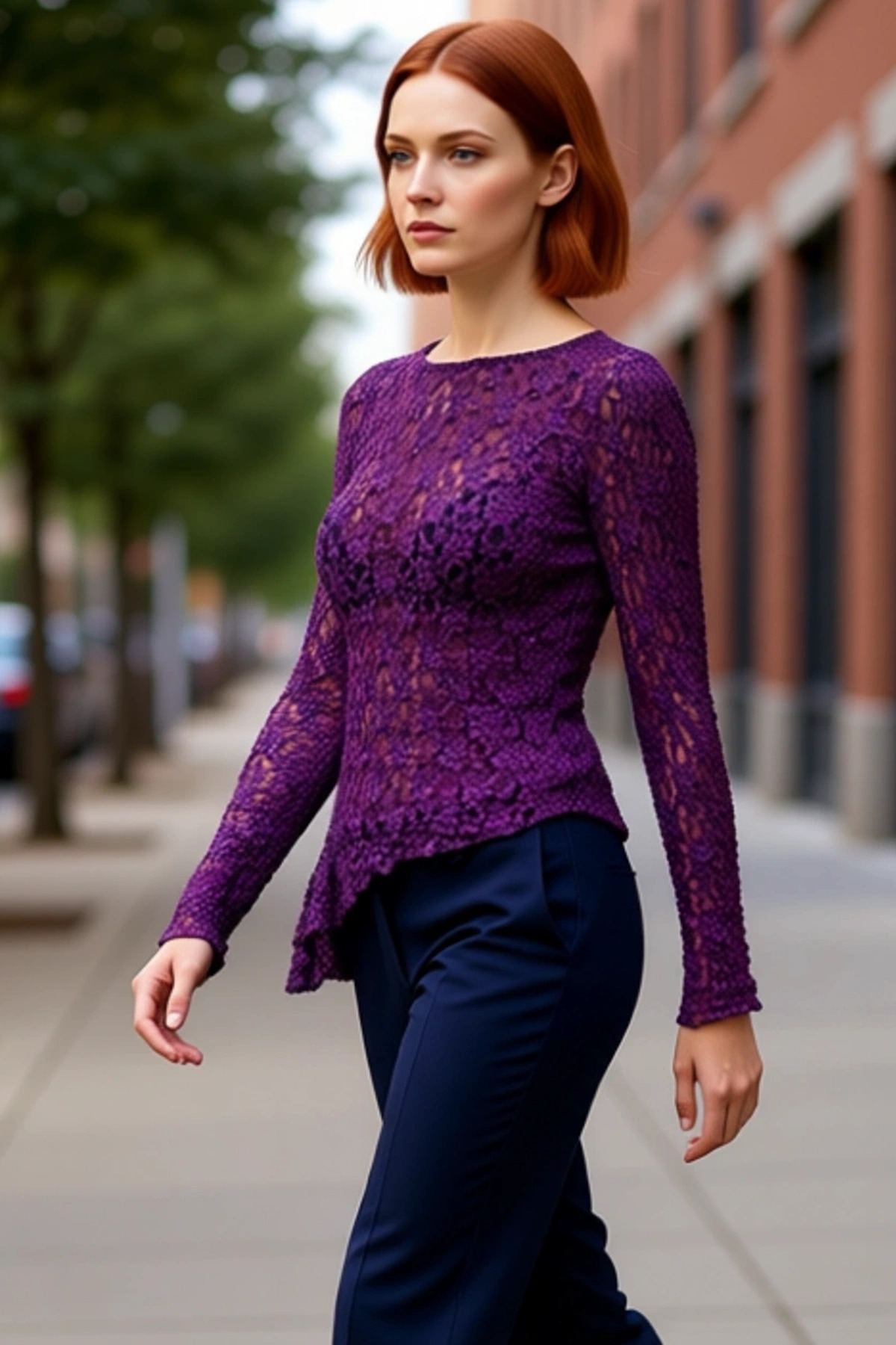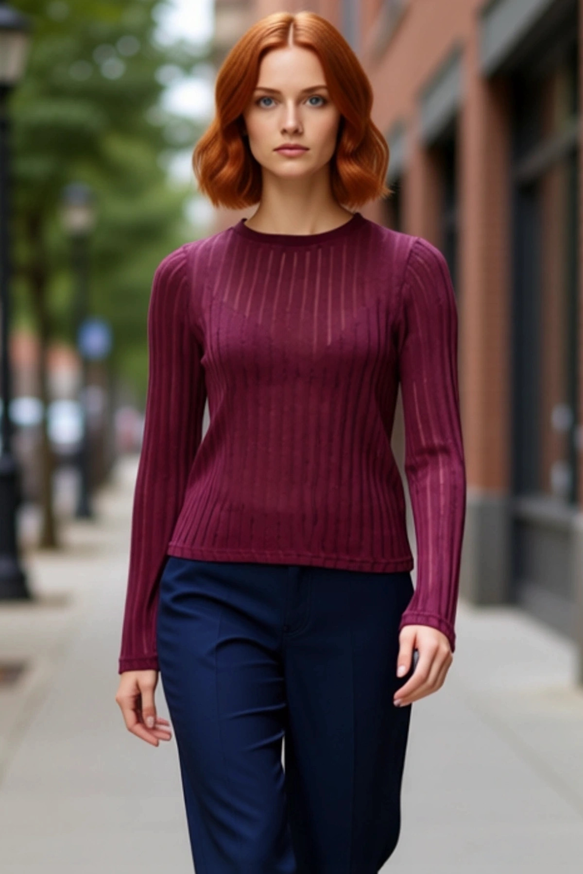 Kadın Uzun Kollu Bordo Triko Görünümlü Bluz Fitted Kalıp Bisiklet Yaka Örme Kumaş Cool Ve Comfort