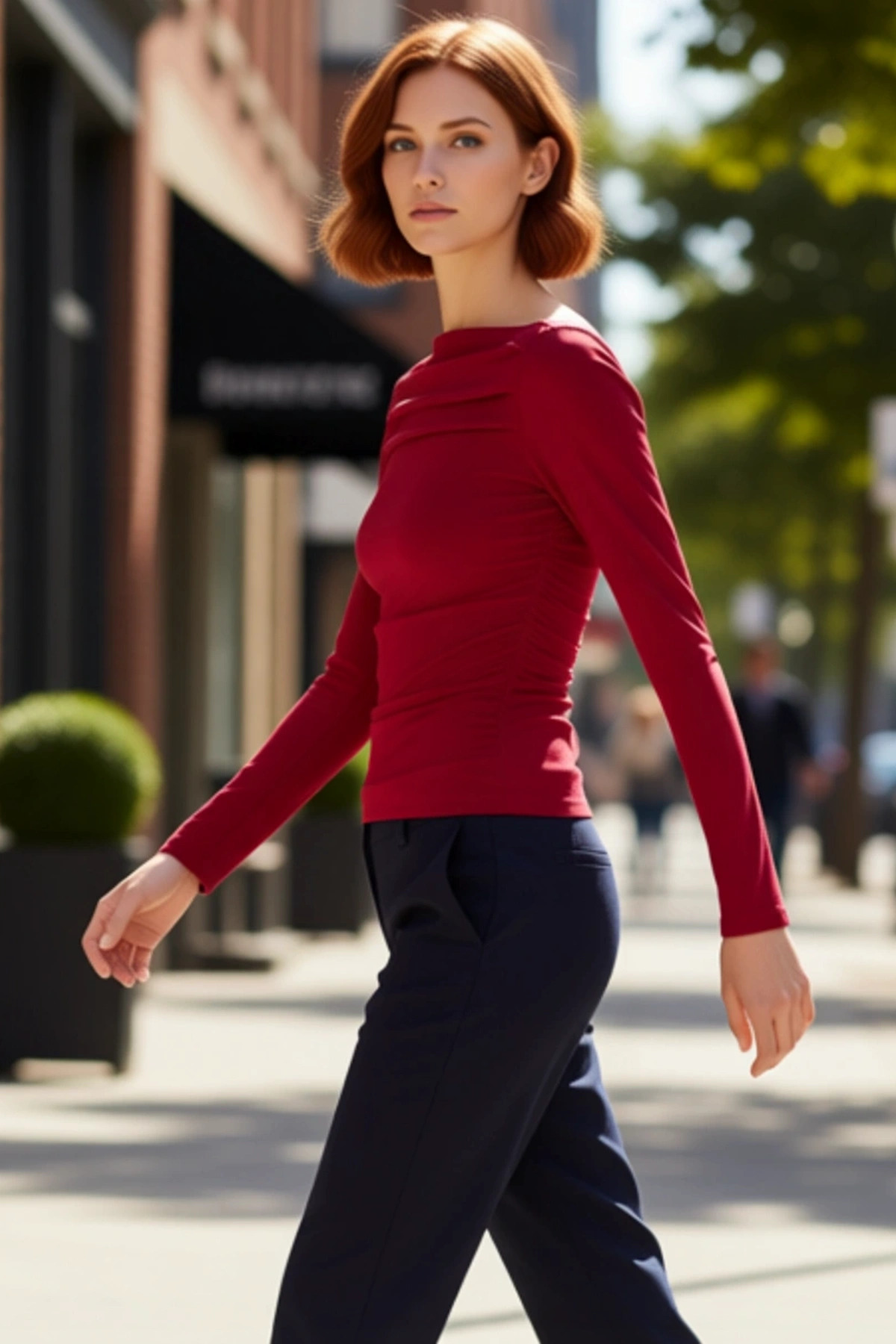 Kadın Dalgıç Kumaş Asimetrik Yaka Uzun Kollu Fitted Bluz Kaliteli Şık Rahat Modern Zarif Günlük