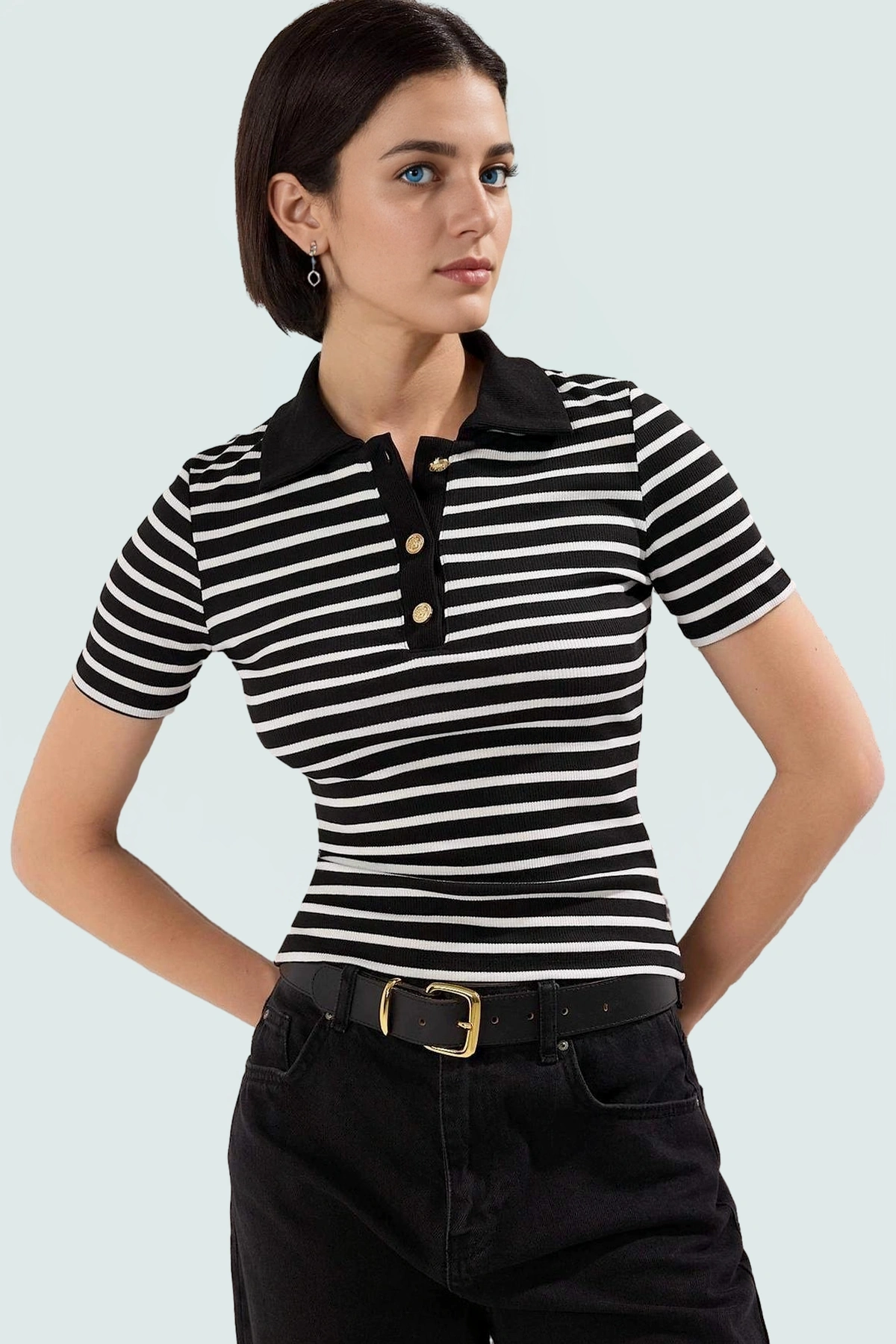 Örme Bürümcük Dokulu Crop Bluz Polo Yaka Kısa Kollu Seçkin Malzeme Zarifane Tasarım