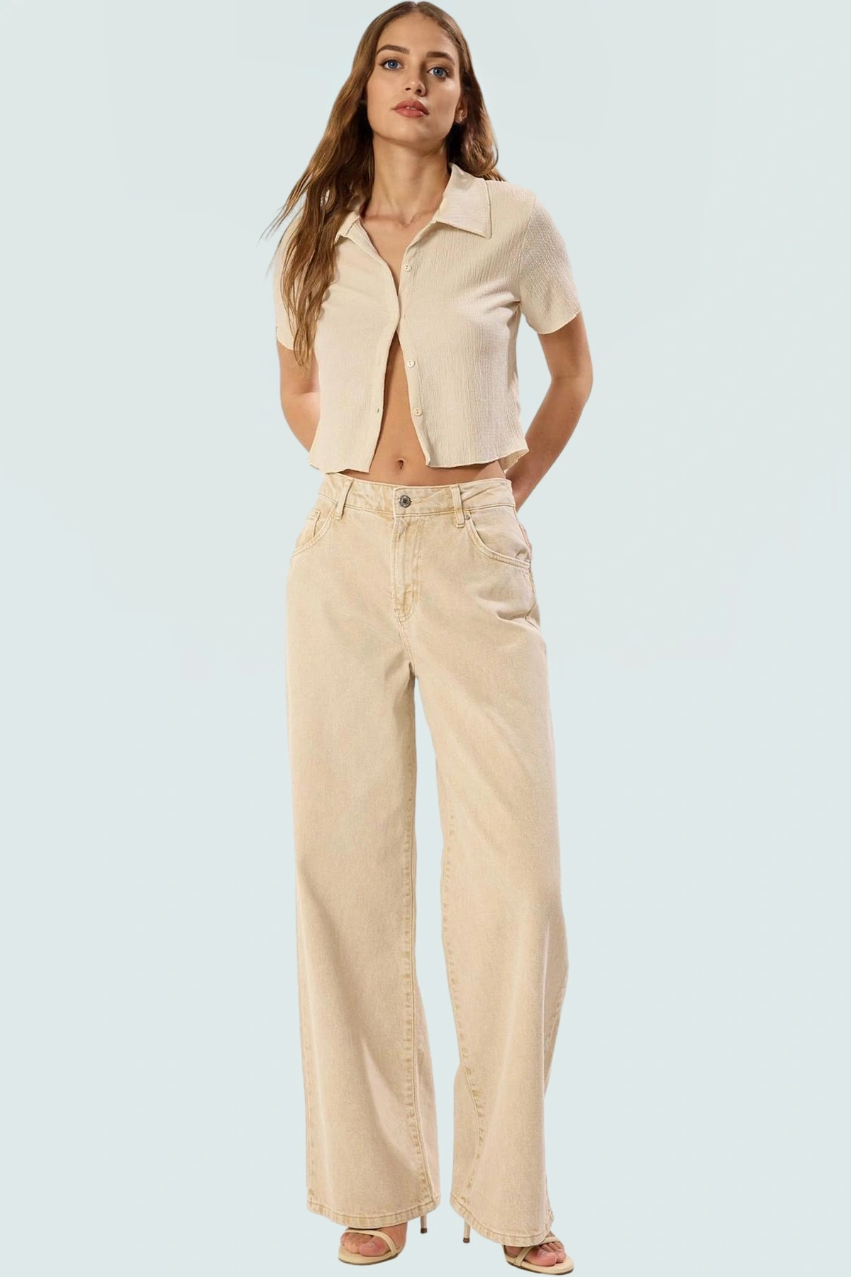 100 Keten Bluz Crop Regular Kalıp Yazlık Günlük Kaliteli İşçilik Profesyonel Görünüm