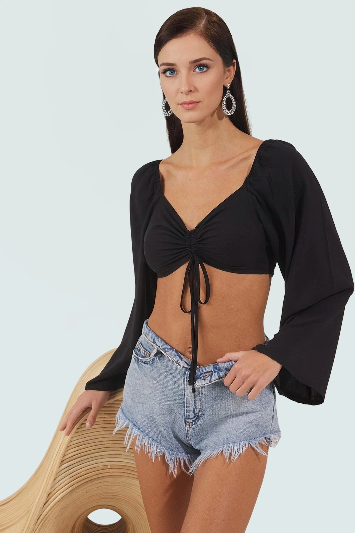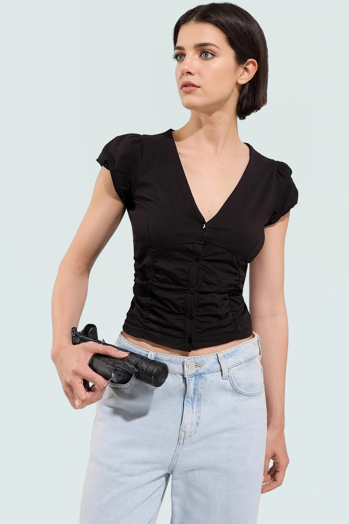 Yazlık Modal Bluz; V Yaka; Fitted; Melfi Dokuma Günlük Kullanım İçin Rahat Ve Şık Seçkin Malzeme