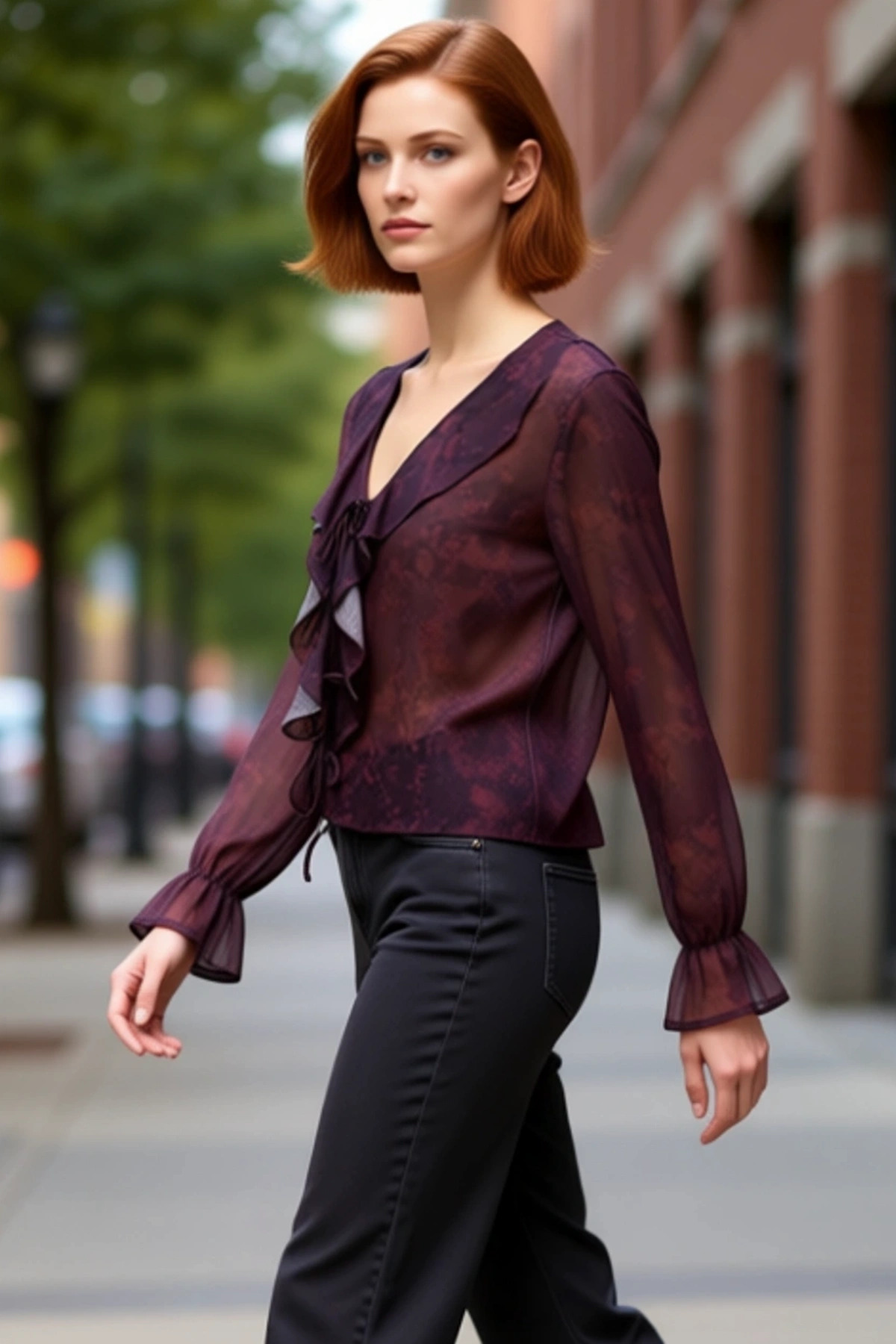 Kadın Şifon Bluz V Yaka Uzun Kol Bağcıklı ve Desenli Tasarım Kaliteli Şık Rahat Modern Zarif