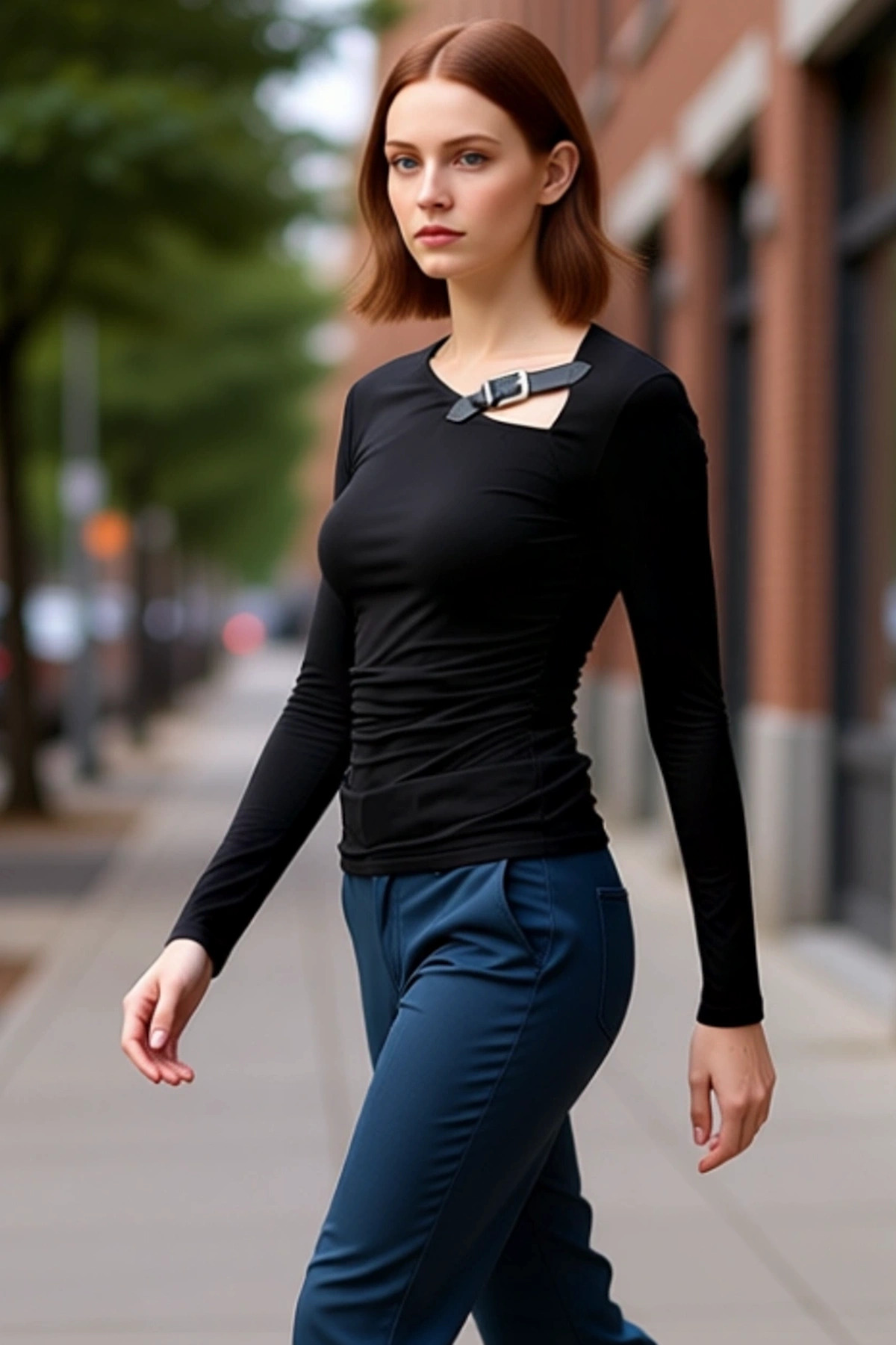 Kadın Moda Örme Üst Asimetrik Yaka ve Aksesuar Detaylı Kaliteli Şık Rahat Modern Zarif Günlük