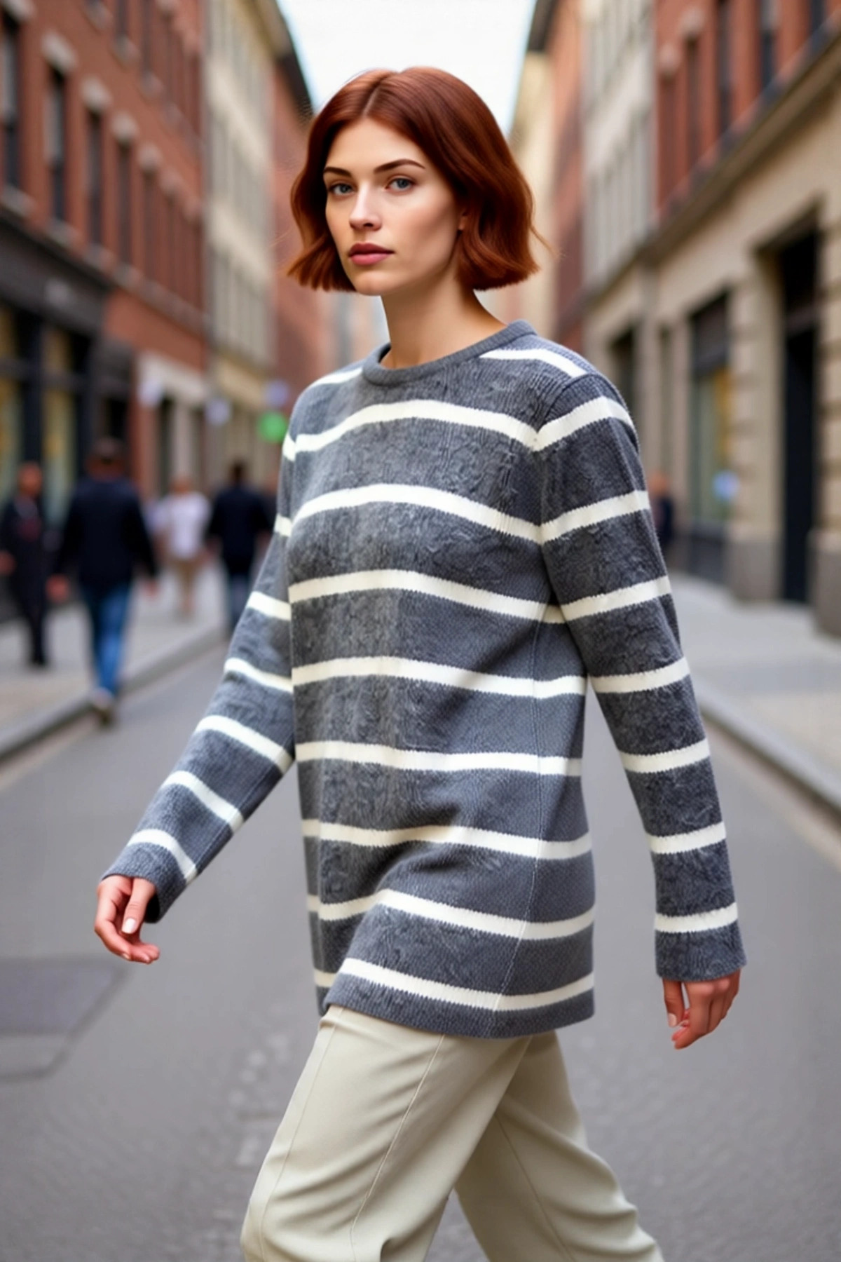 Kadın Çizgili Fitilli Triko Kazak İnce Yapısı İle Kış Aylarında Modern Bir Görünüm Sağlar Kaliteli