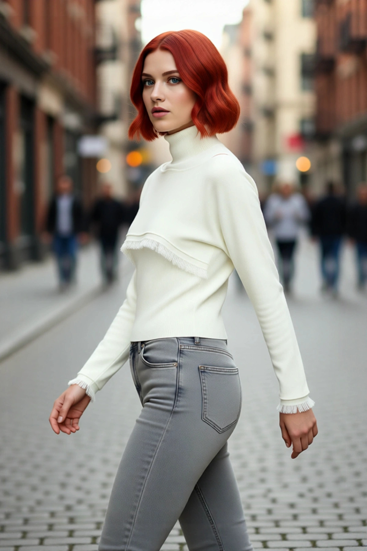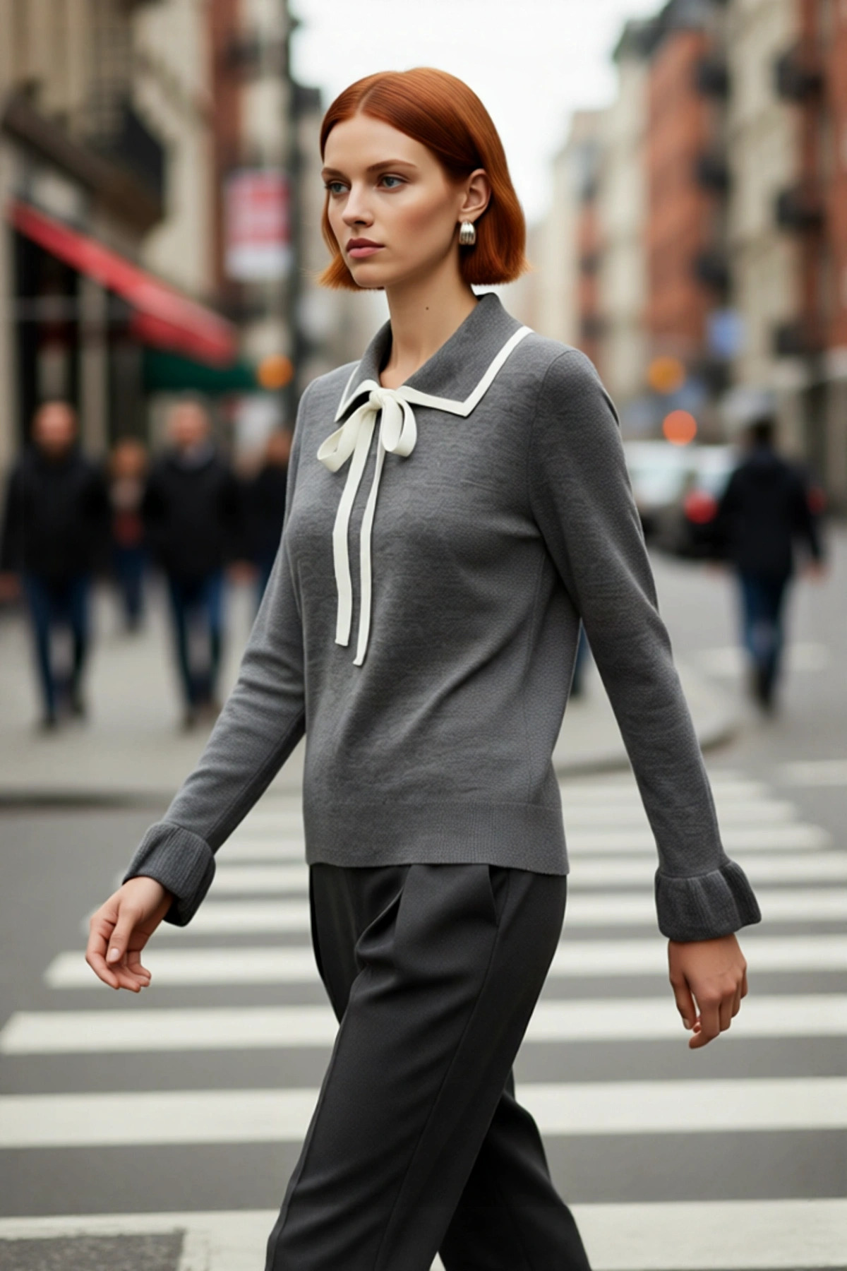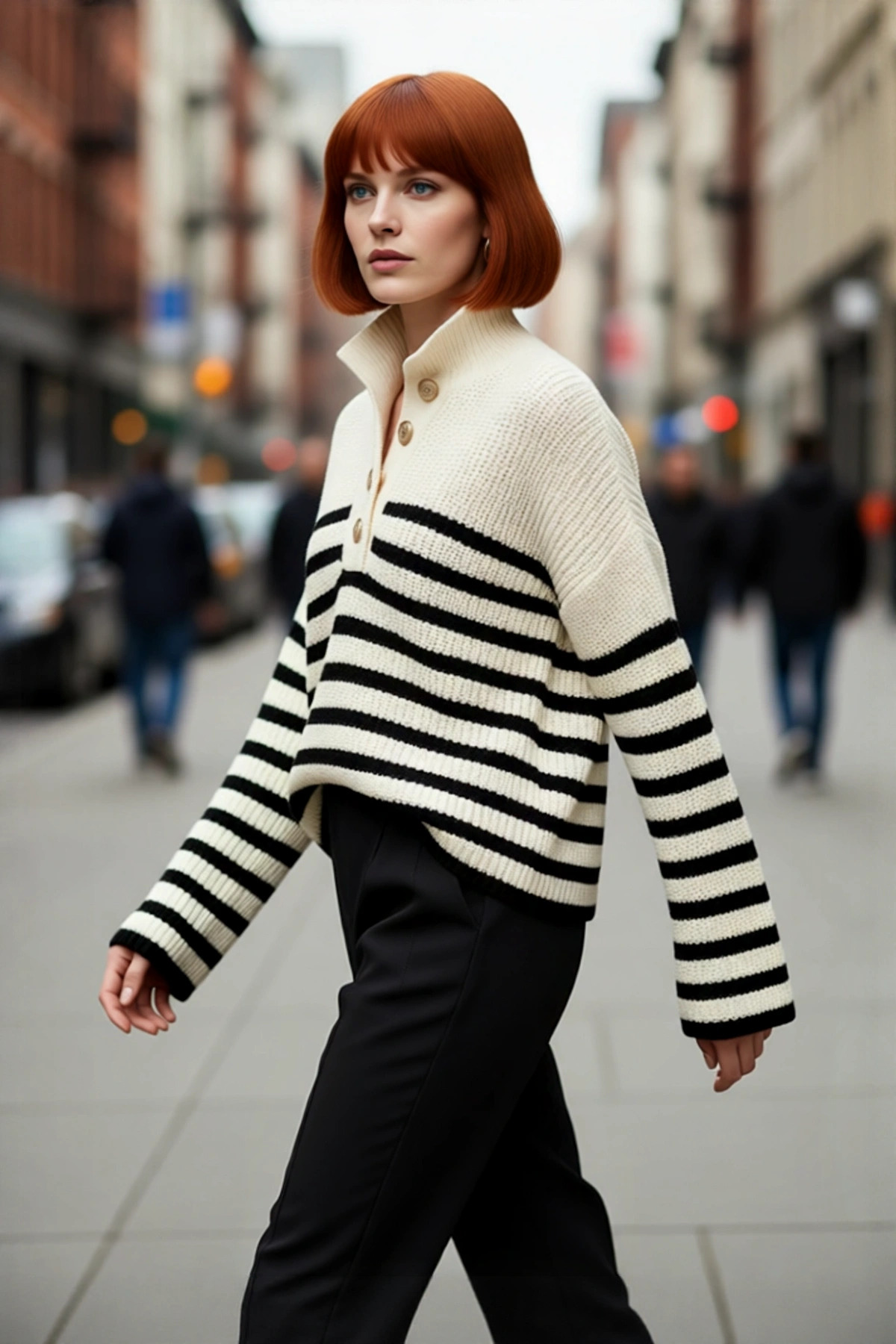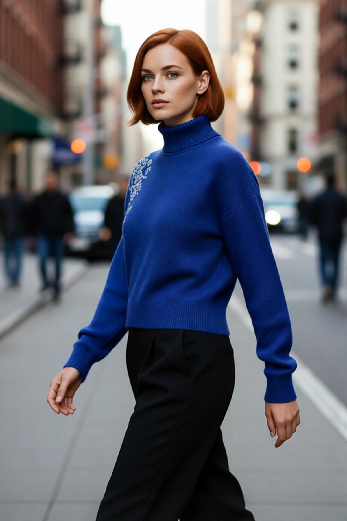 Kadınlara Özel Regular Kesim Saç Örgü Detaylı Triko Kazak Dik Yaka Balon Kol Kışlık Giyim Kaliteli
