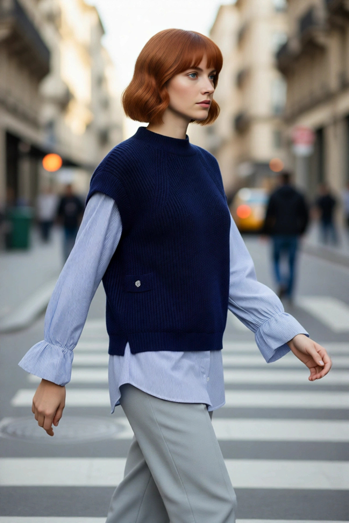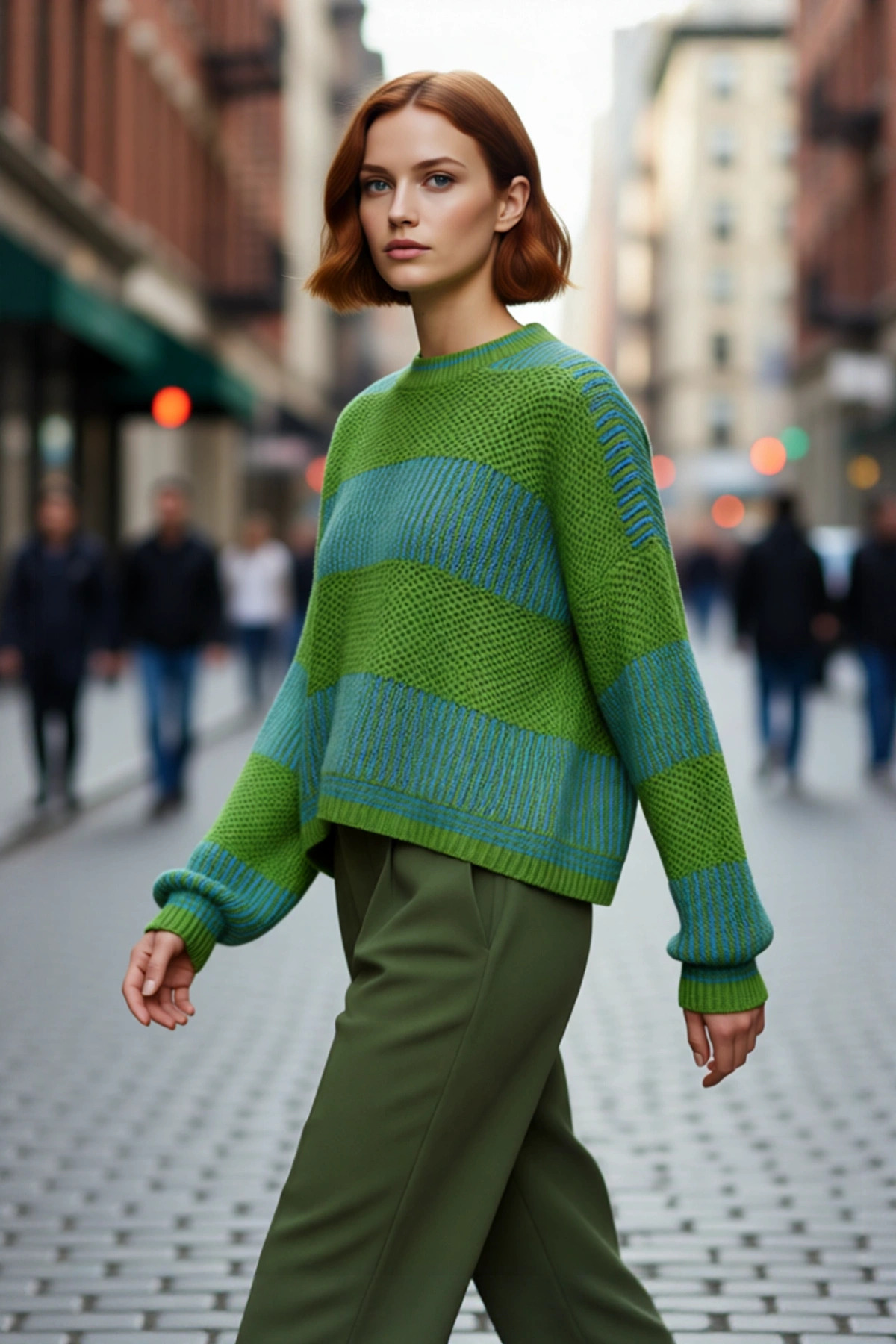 Kadın Rahat Kalıp Düşük Kol Bisiklet Yaka Renk Bloklu Akrilik Triko Kazak Günlük Kullanım Şıklığı.
