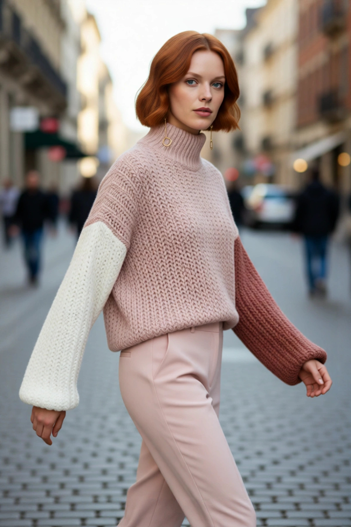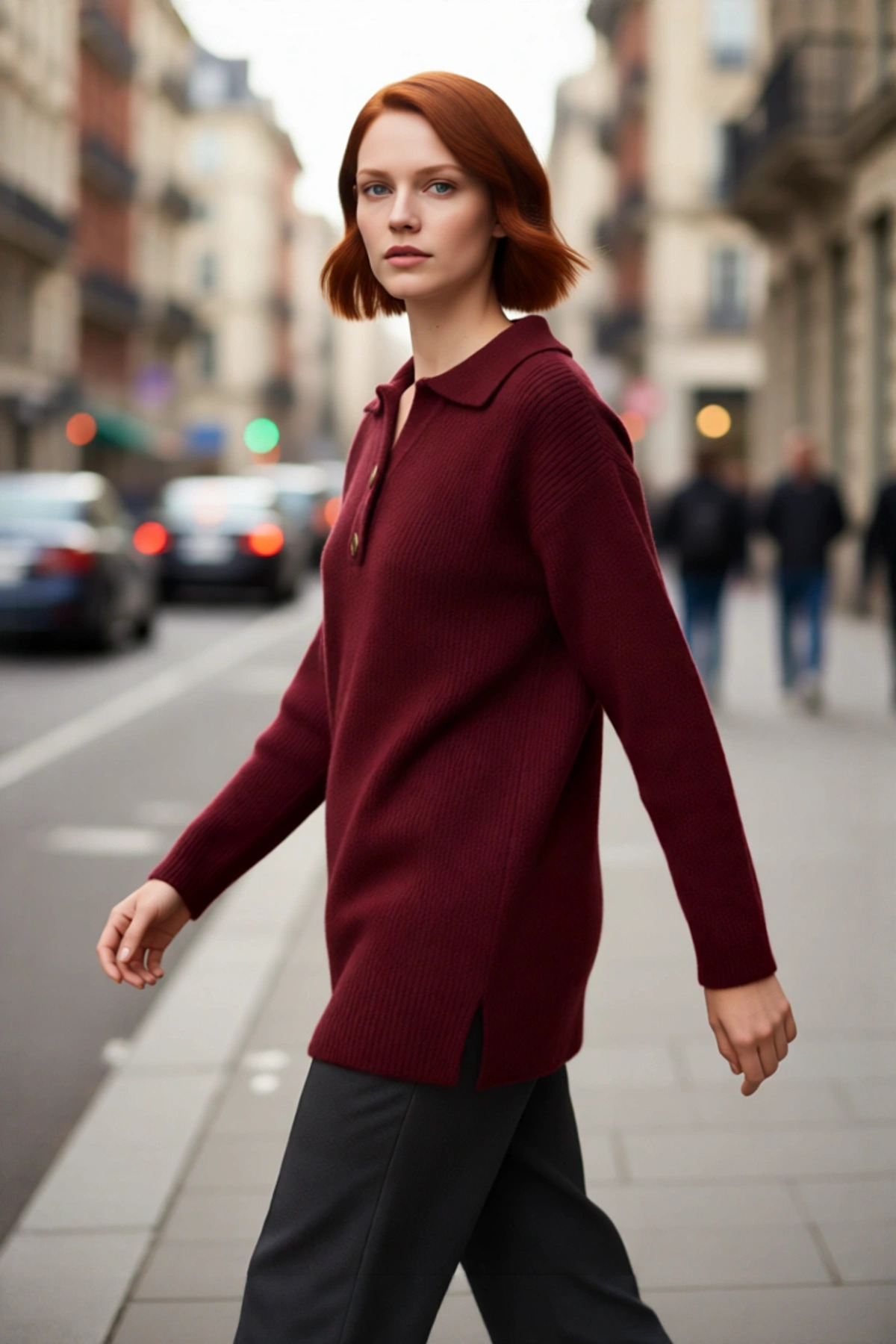 Kadınlara Özel Oversize Kesim Düz Desen Balıkçı Yaka Uzun Kollu Triko Kazak Kış Modası Kaliteli