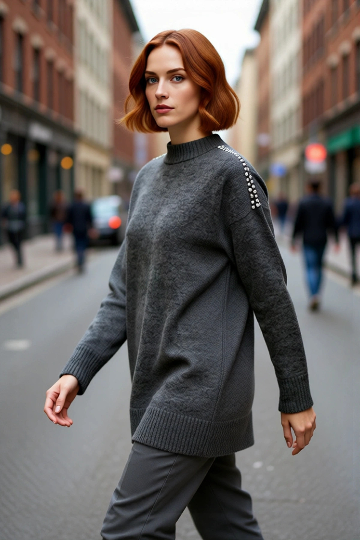 Kadın Oversize Dik Yaka Düz Akrilik Triko Kazak Basic Rahat Kış Kombinleri İçin İdeal Kaliteli