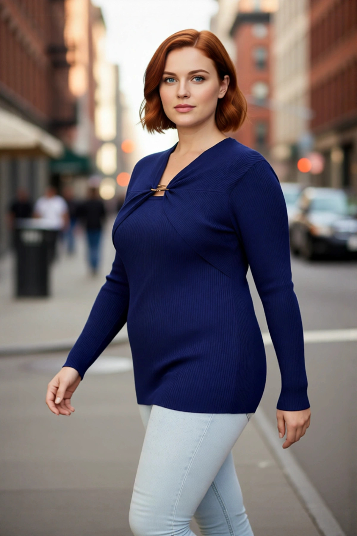 Kadın Premium Özel İplik Fitilli Triko Kazak Aksesuar Detaylı V Yaka Uzun Kol Zarif Giyim Kaliteli