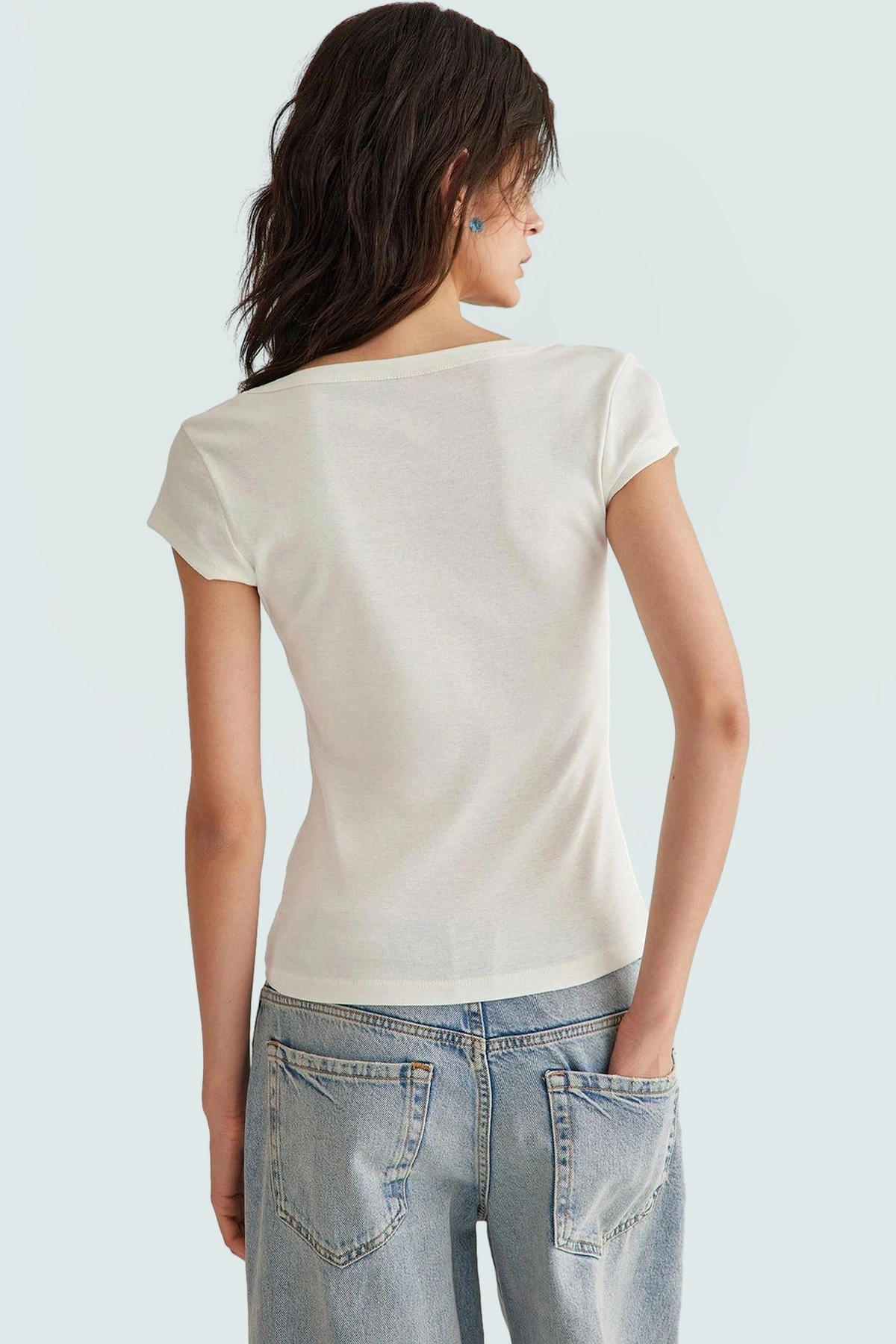 Yumuşak, nefes alan ve şık bir bluz arıyorsanız, doğru yerdesiniz! %100 pamuk ribana kumaştan üretilen bu ekru bluz, gün boyu konforu garanti eder. Fitted kalıbı, vücuda mükemmel otururken, kare yakası modern ve zarif bir görünüm sağlar. Kısa kollu tasarımı sıcak günler için idealdir. Bu çok yönlü bluz, günlük hayatta rahatlıkla kullanabileceğiniz gibi, özel günler için de şık bir tercih olacaktır.