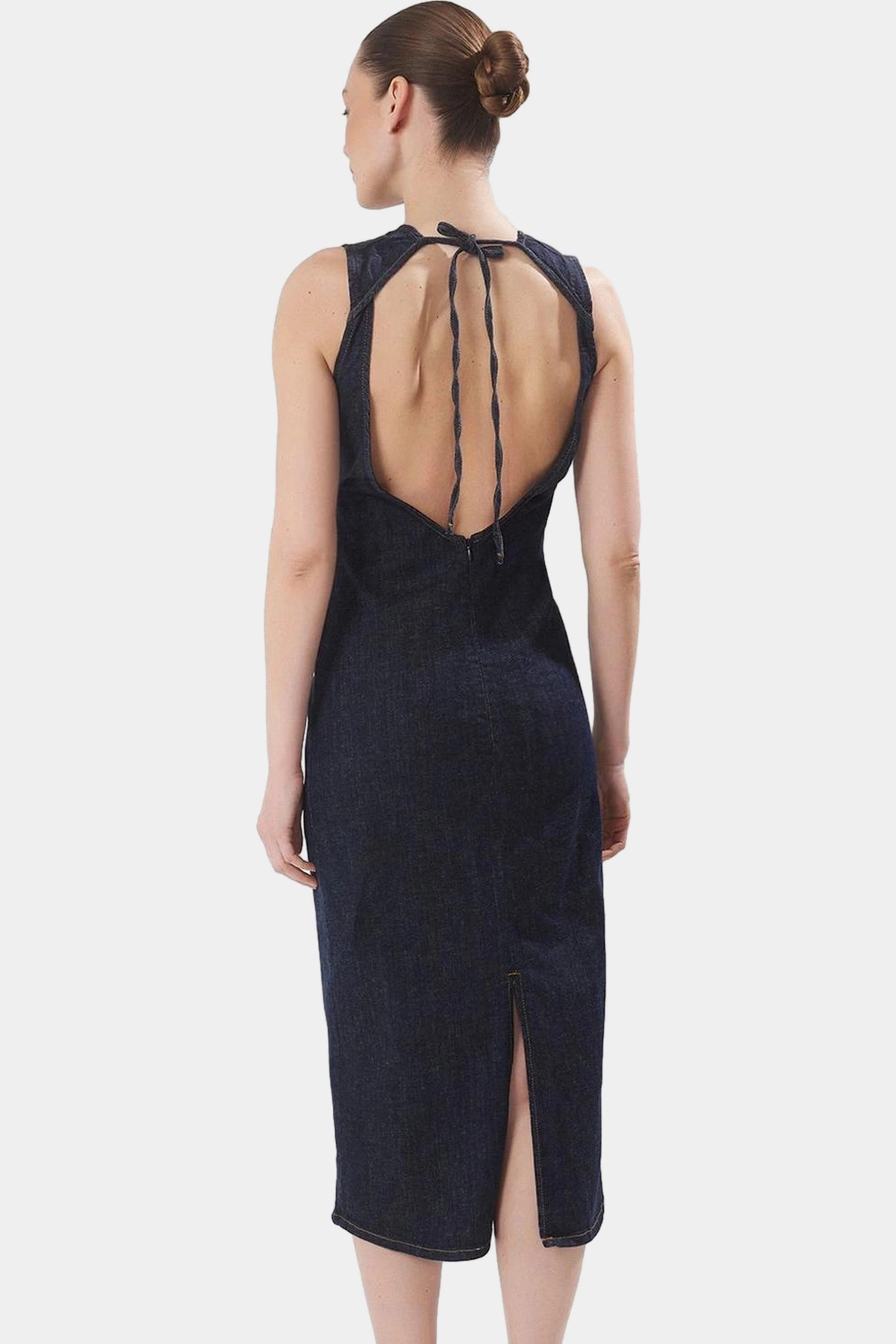 98 Pamuk Denim Midi Elbise Sırt Dekolteli Rahat Kalıp Günlük Kullanım - Görsel 4