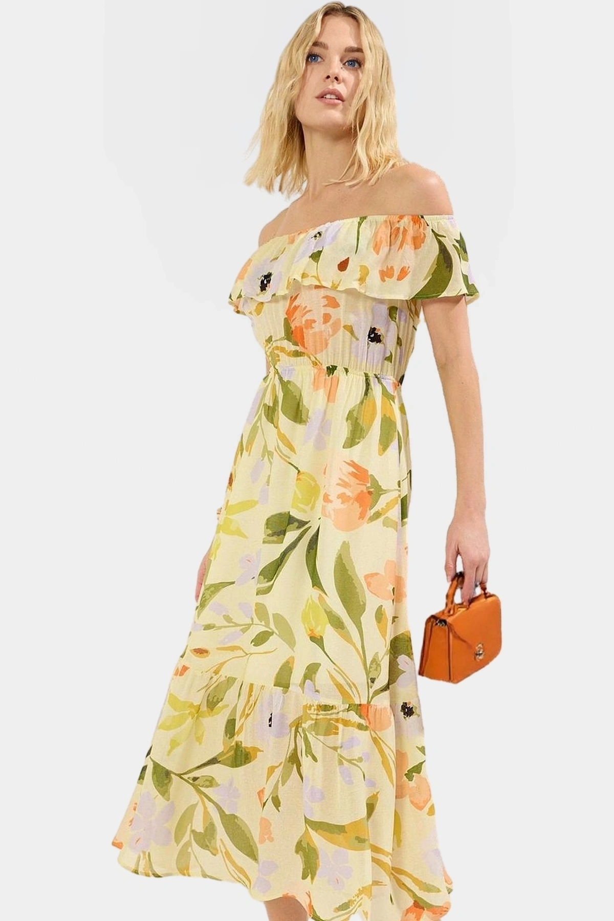 Bu nefes alan, rahat ve şık maxi elbiseyle yaz günlerinde stilinizi konuşturun! 100% polyester, dokuma kumaştan üretilen elbise, hafif ve konforlu bir kullanım sunar. Çiçek desenleri ve A kesimiyle modern ve feminen bir görünüm yakalayın. Omuzları açıkta bırakan tasarımı ve fırfırlı kolları ile benzersiz bir stil yaratırken, maxi boyu ve skater kalıbı ile her vücut tipine uyum sağlar. Günlük kullanım için idealdir. Rahatlığını ve şıklığını bir arada sunan bu elbise, yazın enerjisini yansıtırken gün boyu keyifli hissetmenizi sağlar.