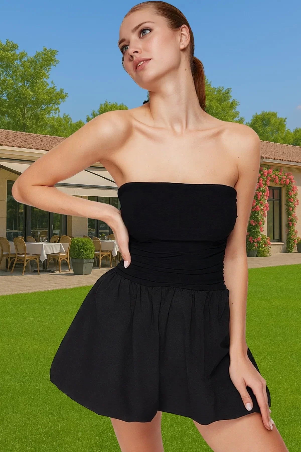 Bu çarpıcı A-kesim mini elbise, şıklığınızı ve rahatlığınızı bir araya getirecek şekilde tasarlanmıştır. Straplez tasarımı ve balon etek detayı ile modern ve feminen bir görünüm sunarken, %96 polyester, %4 elastan karışımı poplin kumaştan üretilmesiyle de olağanüstü konfor sağlar. Nefes alabilir ve hafif yapısı ile yaz aylarında bile serin ve rahat kalmanızı garanti eder.