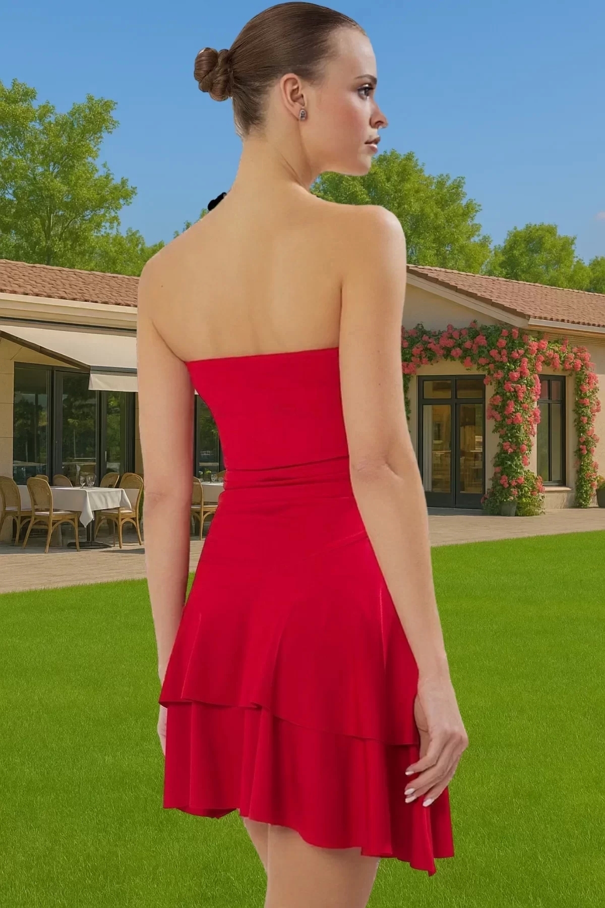 A Kesim Straplez Mini Örme Elbise Polyester Elastan Yazlık Seçkin Malzeme Günlük Kullanım İçin