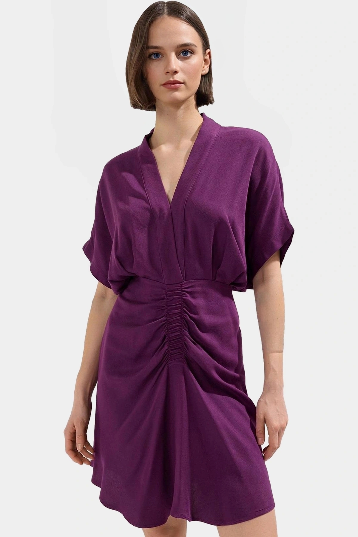 Bu şık ve rahat mini elbise ile yaz günlerinde stilinizi konuşturun! 100% viskoz, Belmando dokuma kumaştan üretilen elbise, nefes alabilir yapısıyla gün boyu konfor sunar. A-line kesimi, vücudunuza mükemmel uyum sağlar ve zarif bir görünüm yaratır. Yarasa kolları ve V yakasıyla feminen bir tarz yakalarken, mini boyu ile yazın enerjisini yansıtır. Astarsız tasarımıyla rahatlığı ön planda tutan bu elbise, hem günlük hem de özel günlerinizde stilinizi tamamlayacak.