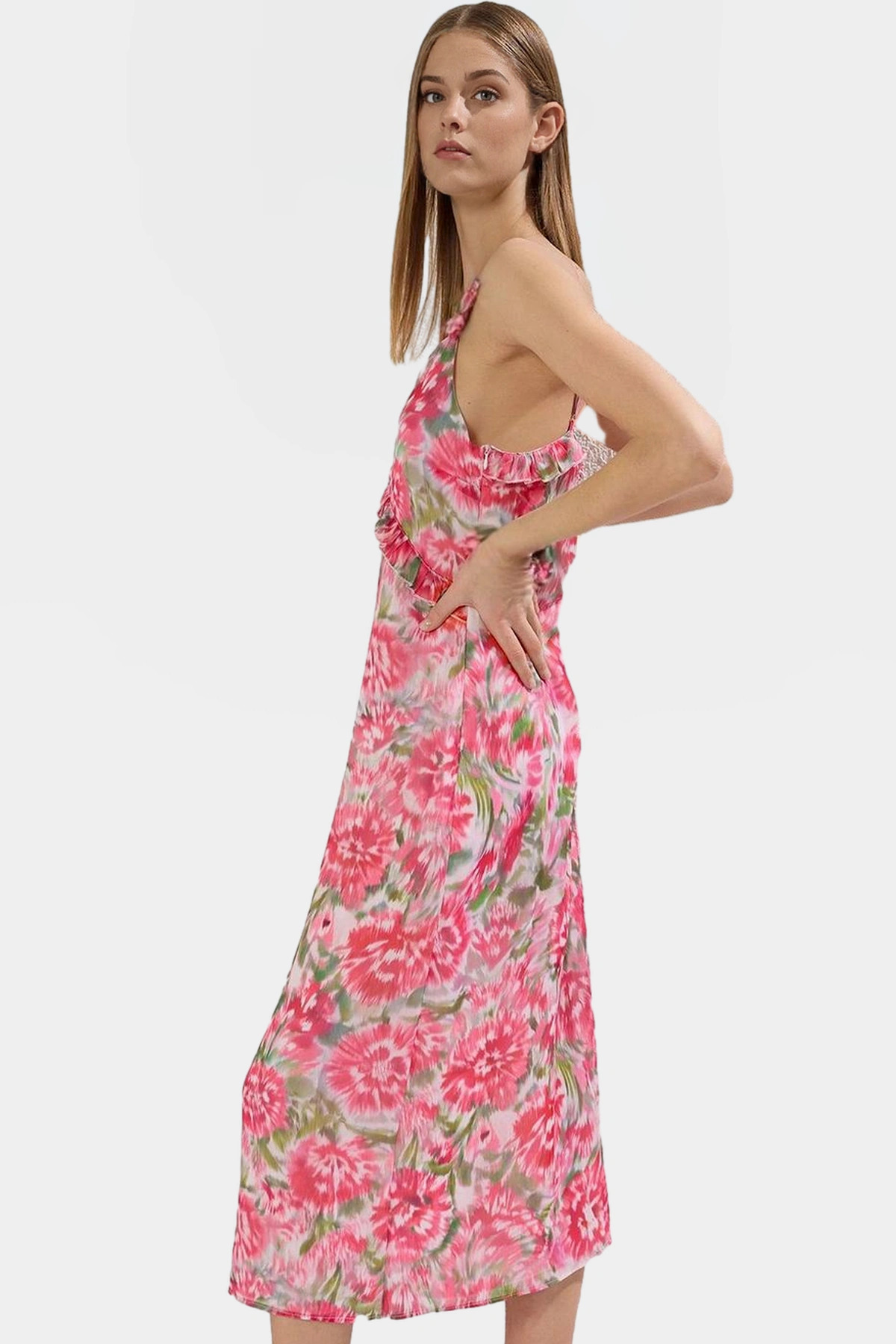 A line Kolsuz Şifon Maxi Elbise Çiçek Desenli Polyester Yazlık Seçkin Malzeme Yüksek Kalite