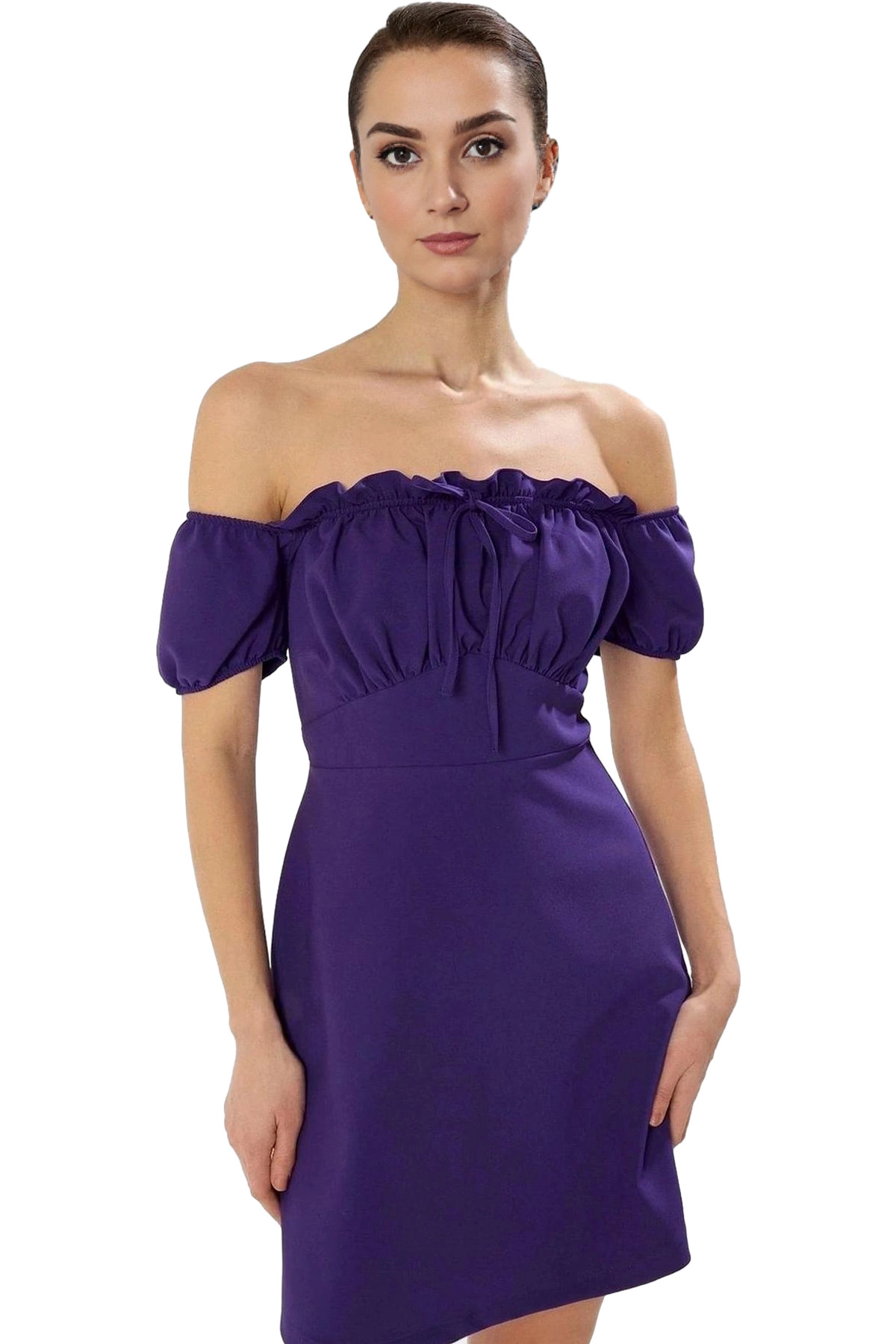A Line Mini Elbise Krep Kumaş Balon Kollu Rahat Kalıp Şık Görünüm Kaliteli İşçilik