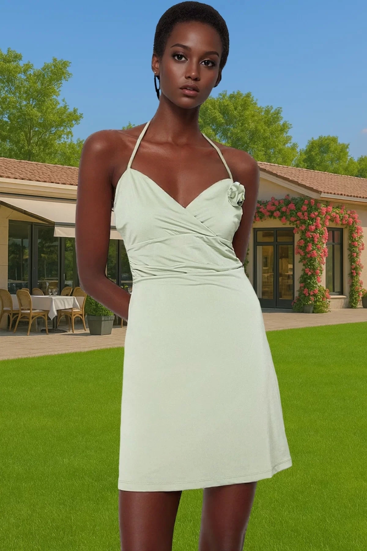Bu şık ve rahat mini elbise, yaz aylarında hem şık hem de rahat olmak isteyen kadınlar için mükemmel bir seçenek. A-line silueti ve mini boyu ile modern ve feminen bir görünüm sunarken, yumuşak ve esnek örme kumaşıyla gün boyu konfor sağlar. Kalp yakası ve kolsuz tasarımıyla sıcak havalarda serin kalmanıza yardımcı olur.