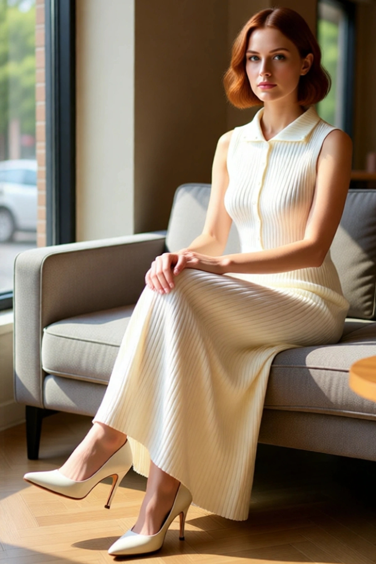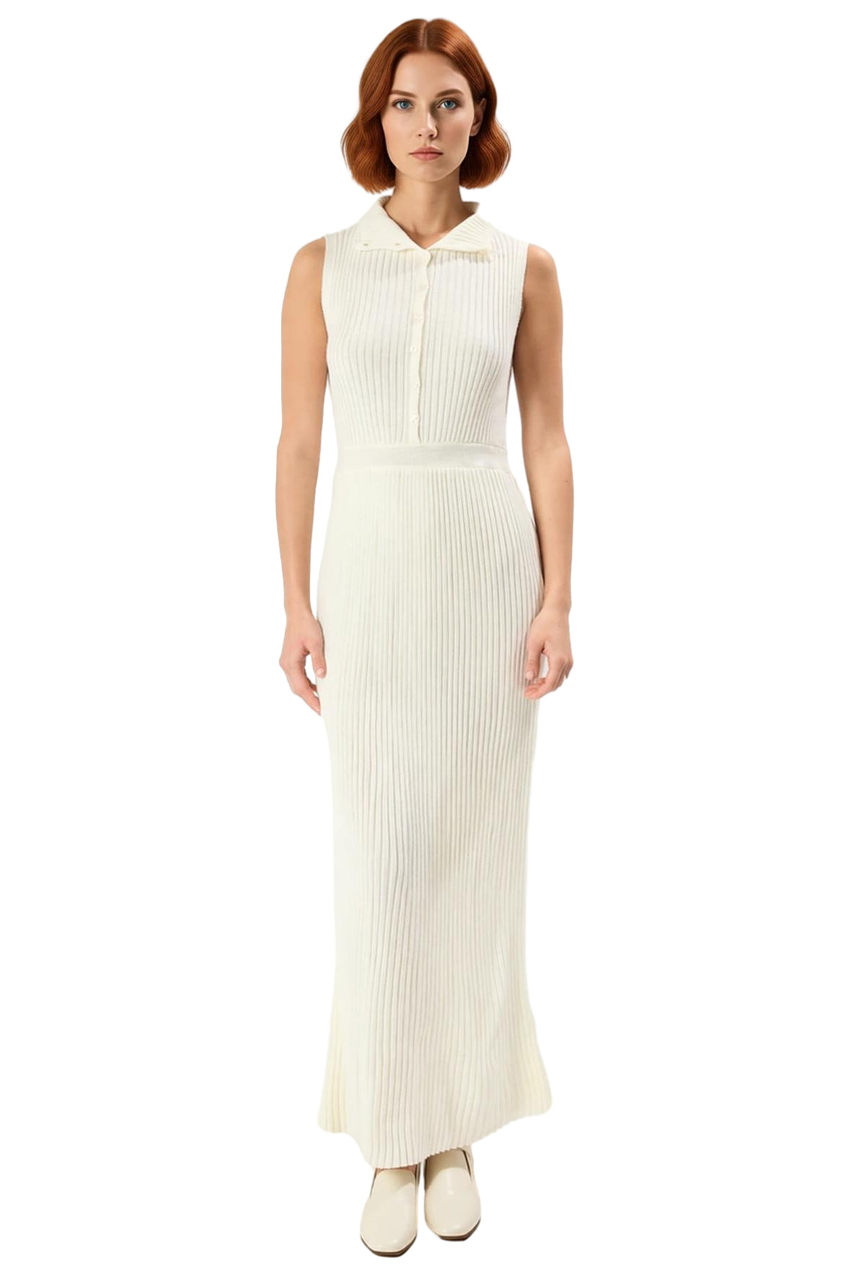 Yaz aylarında şık ve rahatlığı bir arada arayanlar için ideal bir seçenek olan bu ekru renkli midi elbise, 100% akrilik triko kumaştan üretilmiştir. A-line kesimiyle vücut hatlarınızı zarifçe sararken, kolsuz tasarımıyla özgürce hareket etmenizi sağlar. İnce yapısıyla yaz sıcağında bile sizi bunaltmayacak bu elbise, günlük yaşamınızda rahatlıkla kullanabileceğiniz gibi, şık bir akşam yemeğinde de tercih edebilirsiniz.