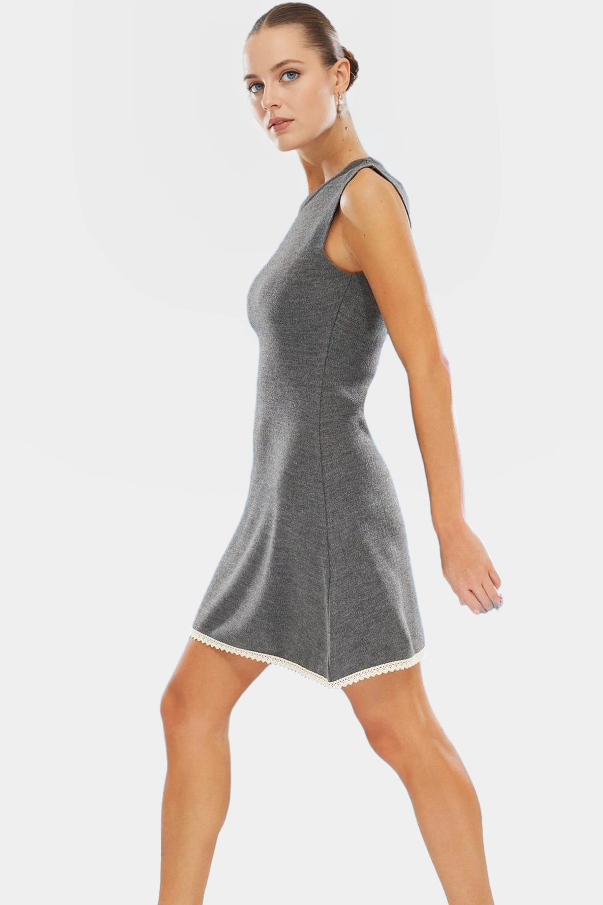 A line Triko Mini Elbise Dantel Detayı ile Şıklık ve Konfor Özenle Seçilmiş Dayanıklı Malzeme - Görsel 4