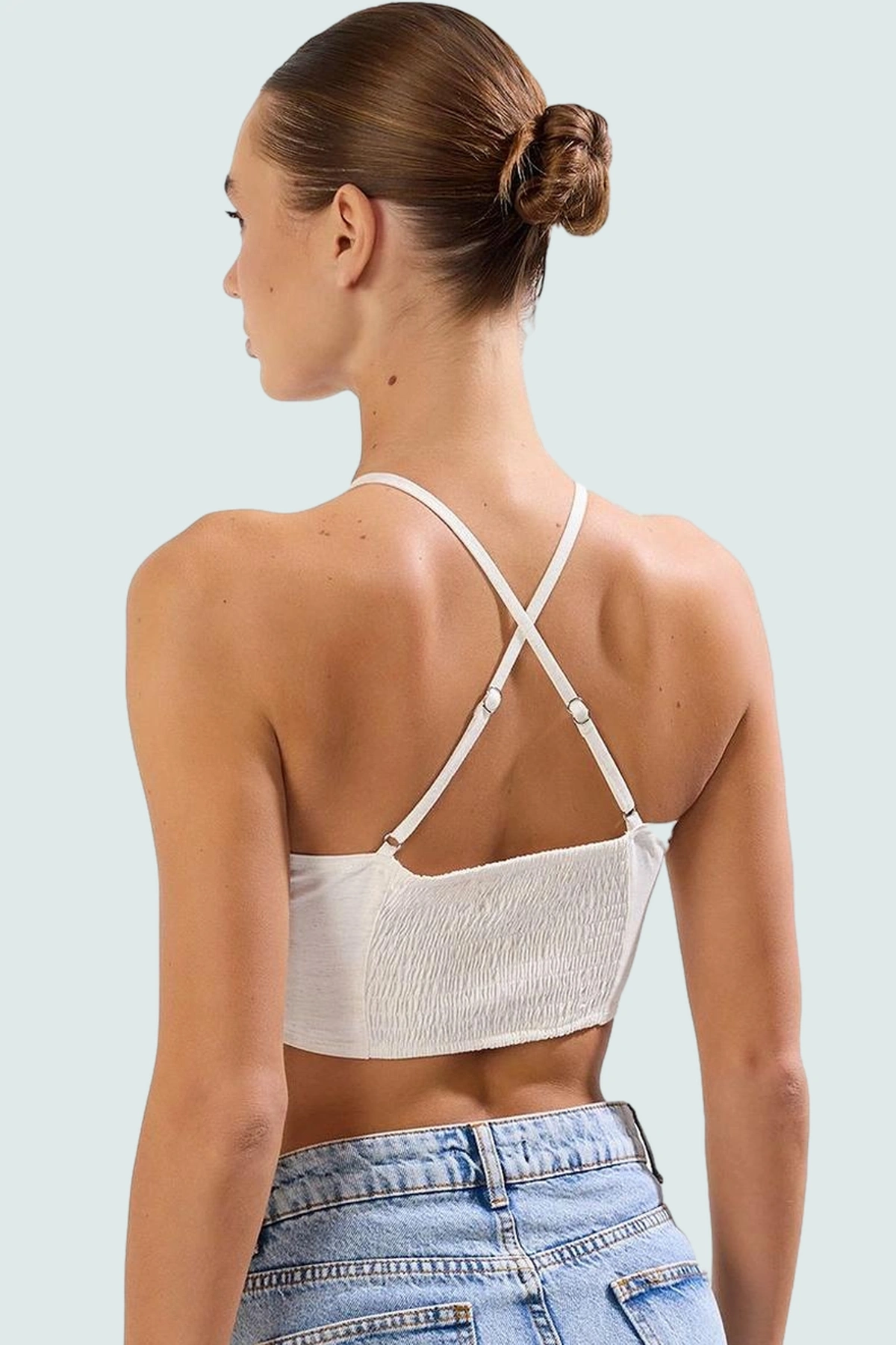 Plaj stilinizi tamamlayacak, şık ve rahat bir bluz arıyorsanız doğru yerdesiniz! Ekru rengi ve zarif aksesuar detaylarıyla göz alıcı bu bluz, keten karışımlı dokuma kumaşıyla yaz sıcağında bile konfor sunuyor. Hakim yakası ve kolsuz tasarımıyla hem şık hem de pratik bir seçenek.