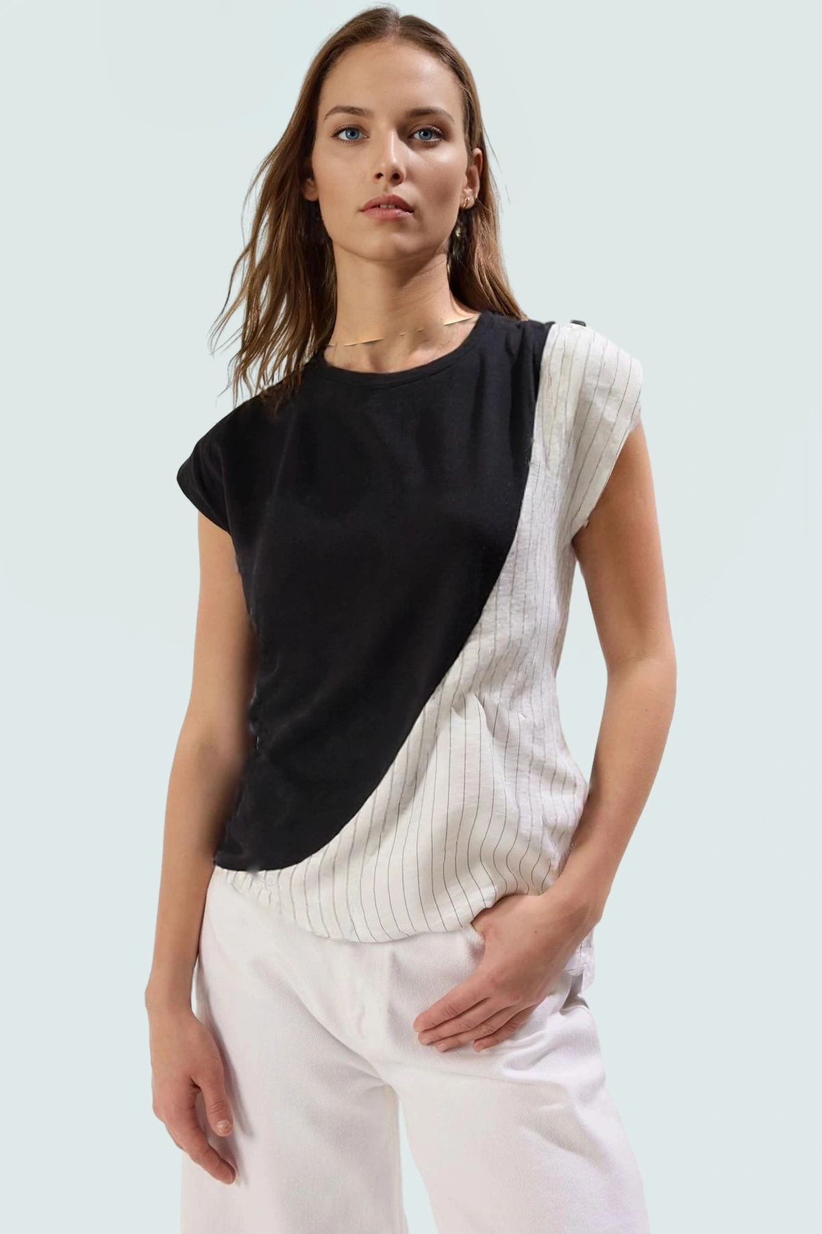 Şıklığı ve rahatlığı bir arada arayanlar için ideal bir seçenek olan bu beyaz bluz, asimetrik tasarımı ve pilise detaylarıyla dikkat çekiyor. %100 pamuklu örme kumaşı, nefes alabilir yapısıyla gün boyu konfor sunuyor. Kısa kolları ve bisiklet yakasıyla yaz aylarında serin ve şık görünmenizi sağlıyor. Rahat kalıbıyla her vücut tipine uyum sağlarken, bağlama detayıyla da tarzınıza farklı bir hava katıyor.