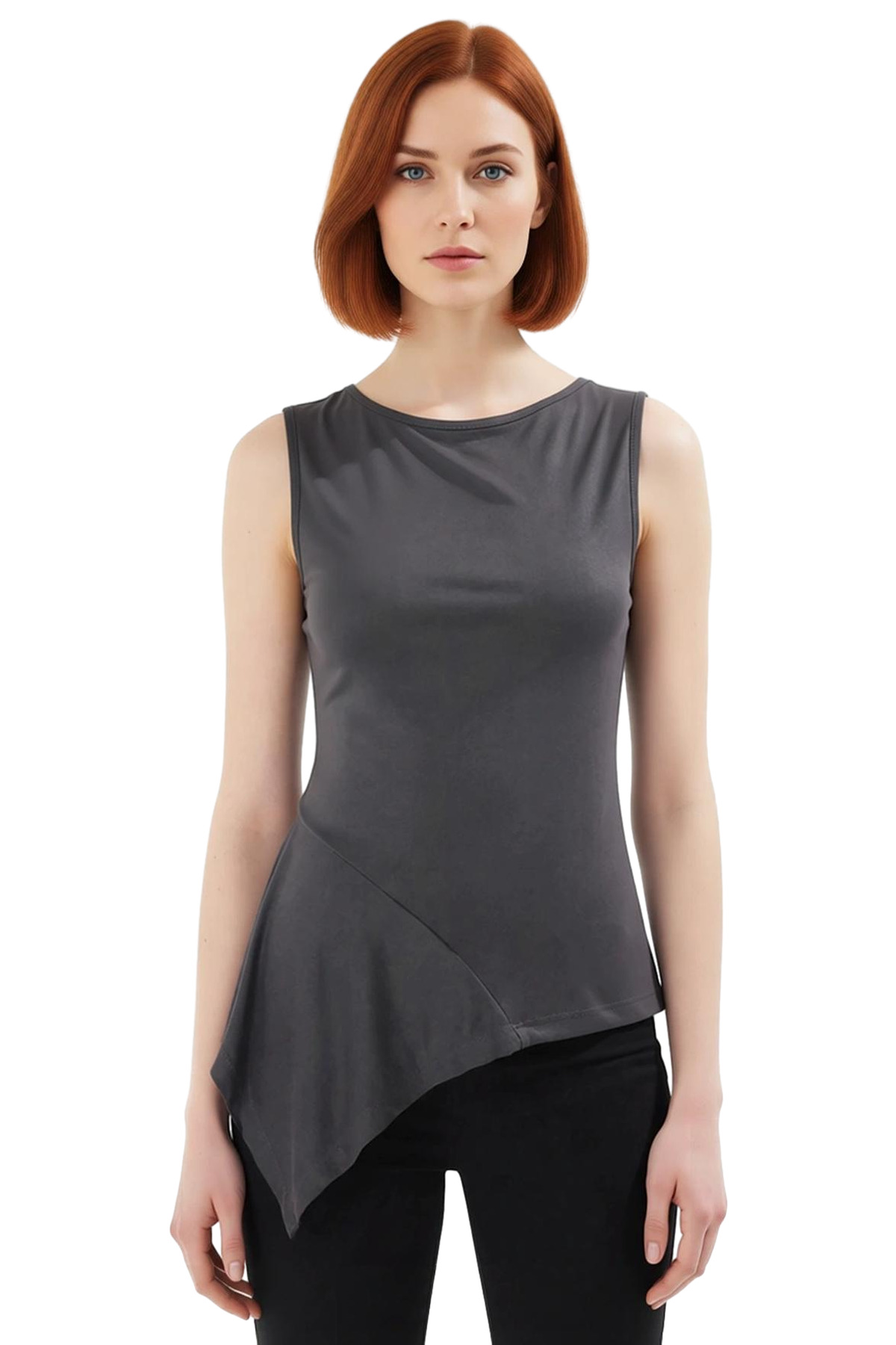Gri rengin şıklığı ve asimetrik kesiminin modern duruşuyla öne çıkan bu kolsuz bluz, günlük stilinizi tamamlayacak ideal bir seçenek. Yumuşak ve nefes alan modal kumaştan üretilen bluz, gün boyu rahatlık ve konfor sunar. Fitted kalıbı sayesinde vücudunuza mükemmel uyum sağlar ve zarif bir görünüm yaratır. Kayık yakası ise bluza feminen bir dokunuş katar. Üstün kaliteli modal ve polyester karışımı kumaş, dayanıklılığı ve uzun ömürlü kullanımını garanti eder.